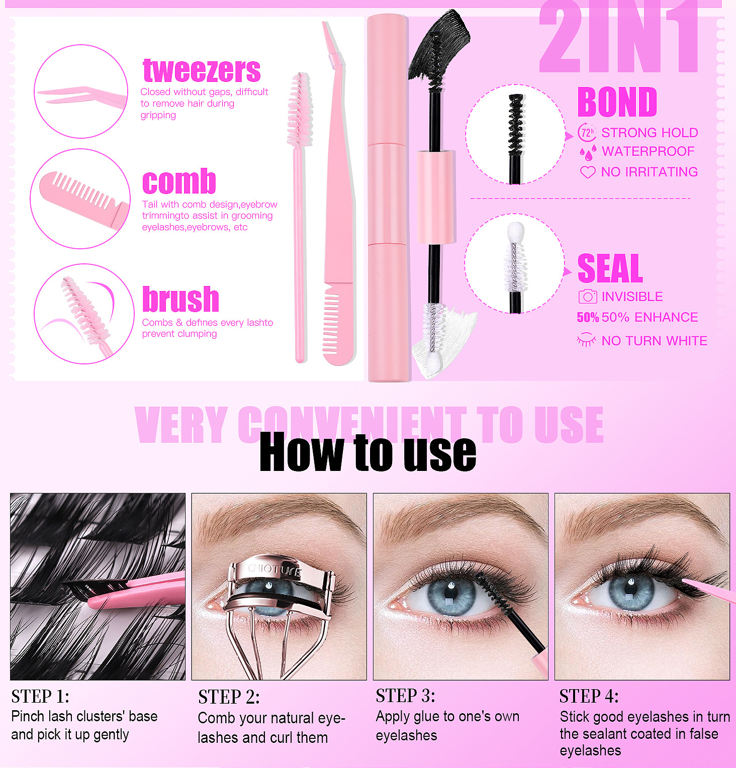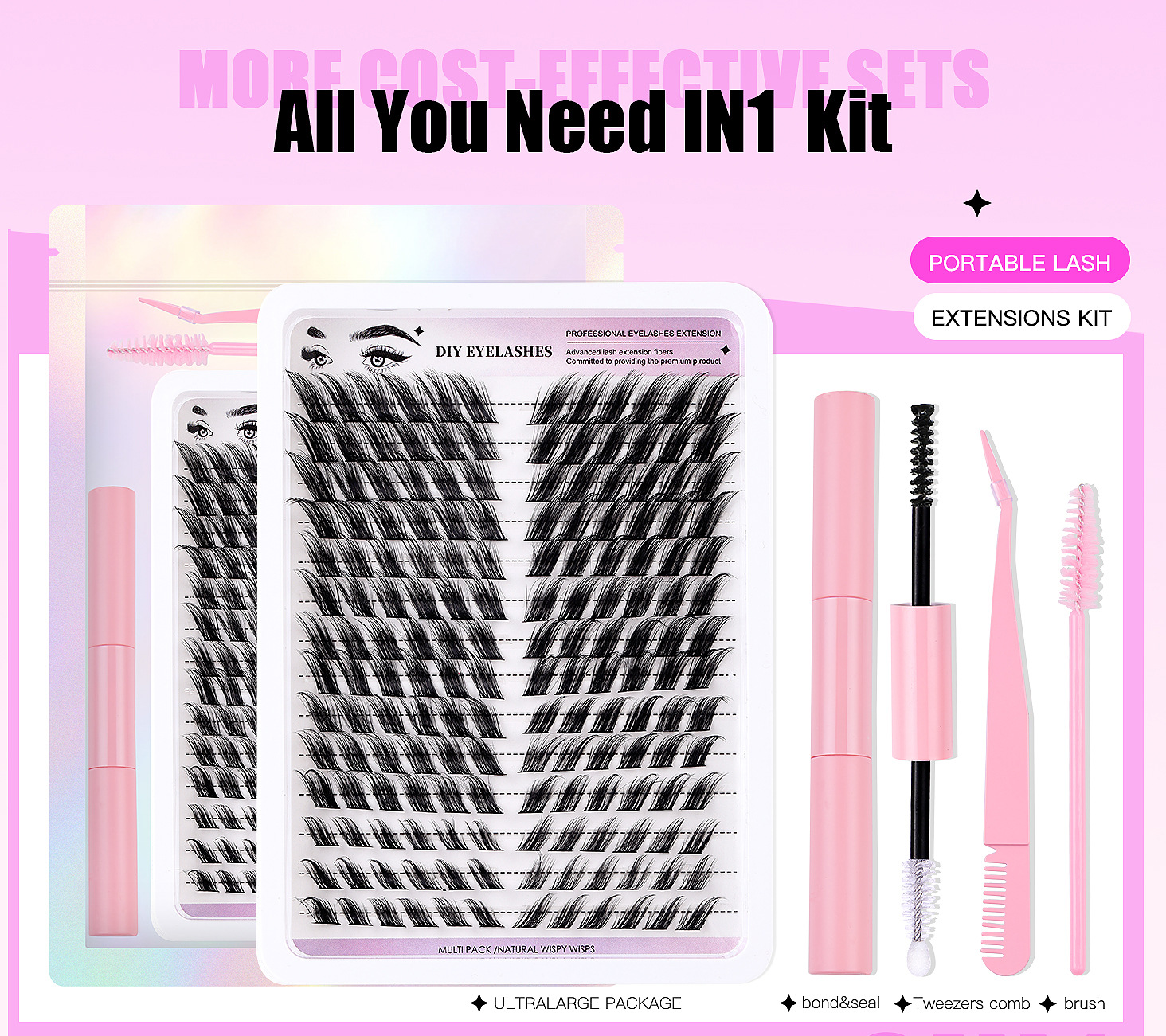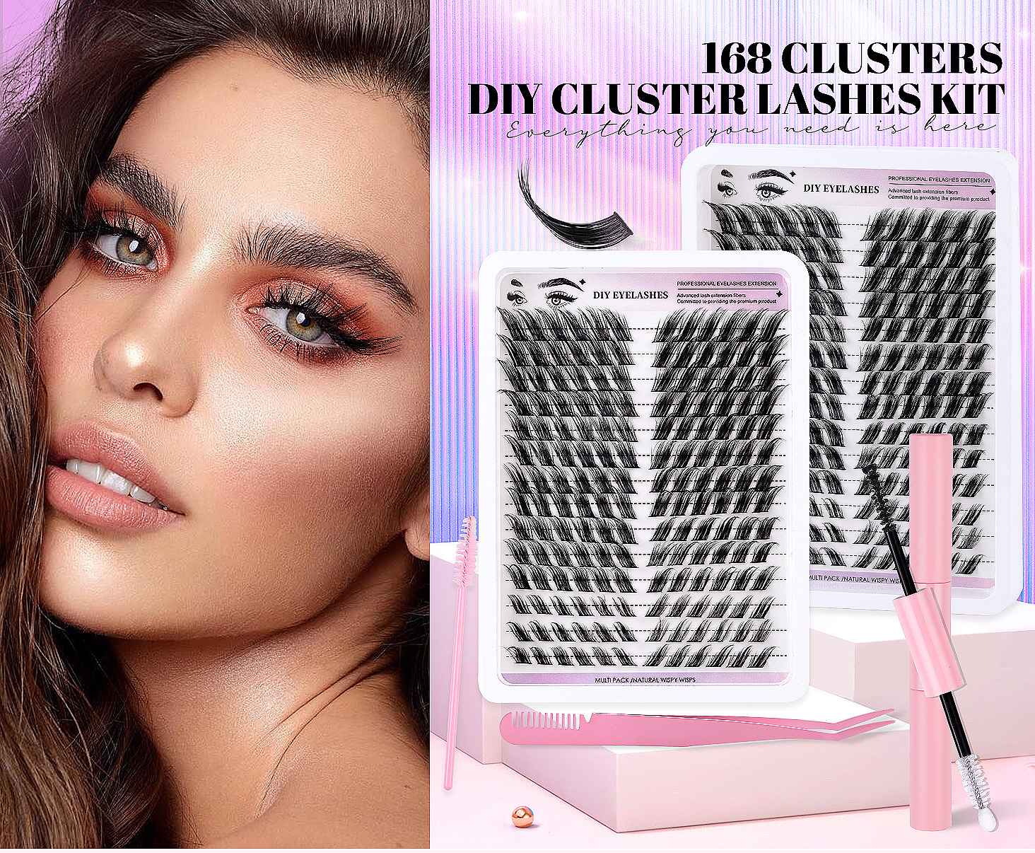 168 Cluster Wispy False Eyelash Kit Fox Eye Style Winged D Curl Realistic Fake Eyelashes Fluffy Natural Individual Cilios Lash