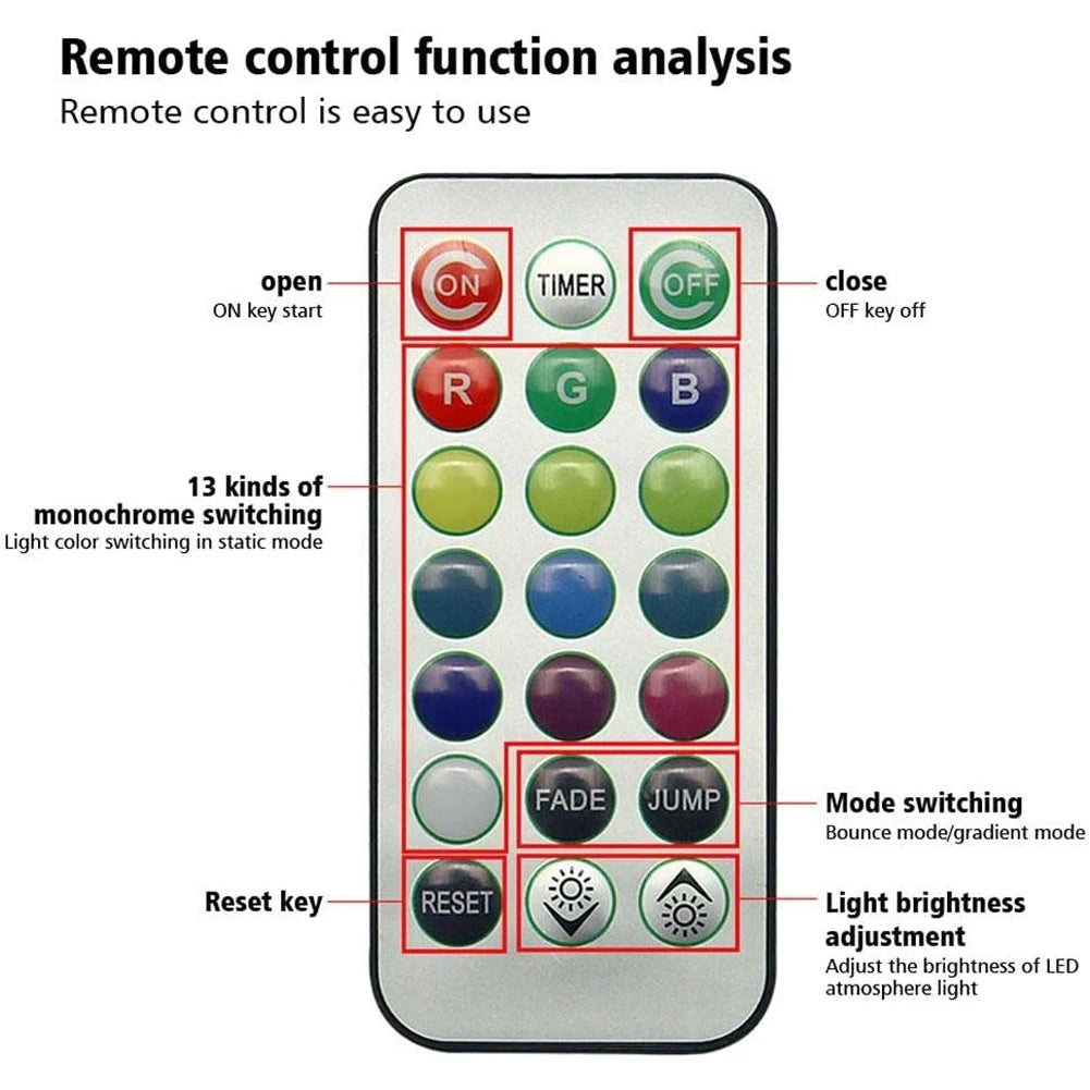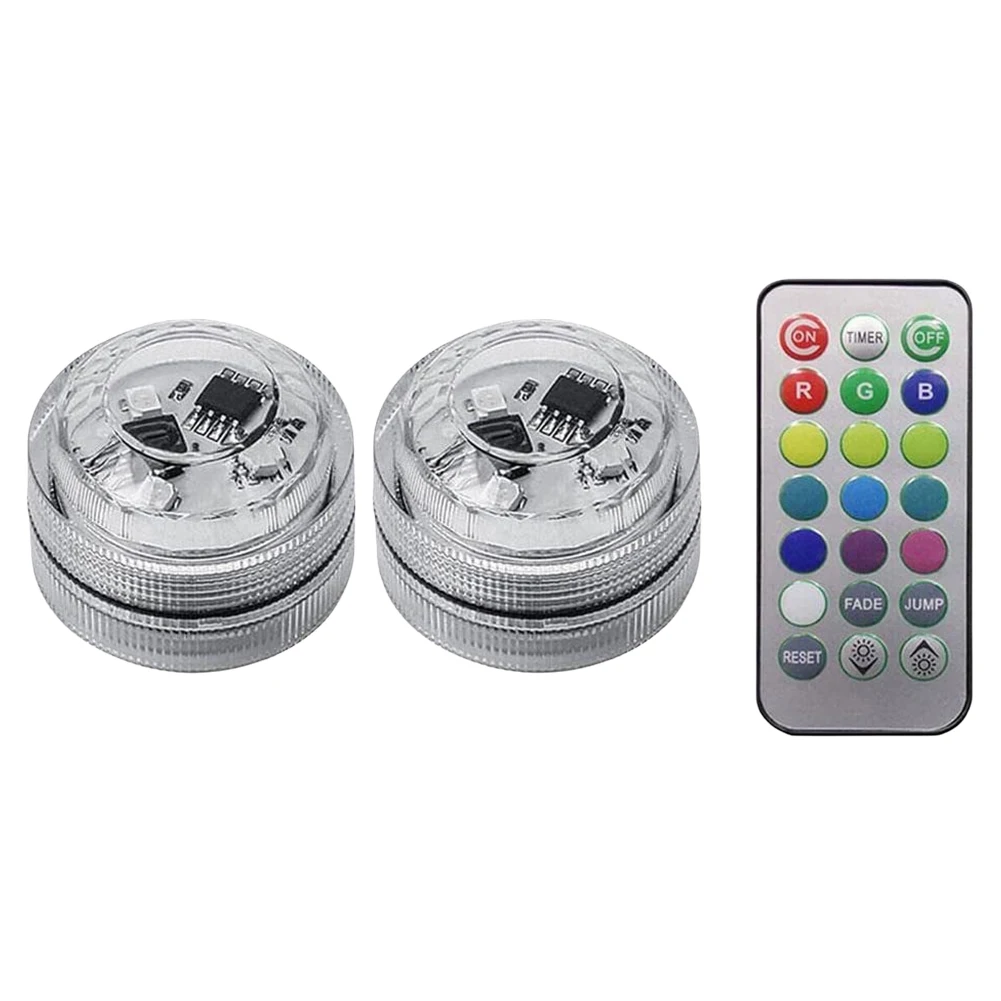 2/4pcs Wireless Adhesive Multicolor Atmosphere Light with Remote Control Kit IP68 Waterproof Car Interior Roof Foot Ambient Lamp