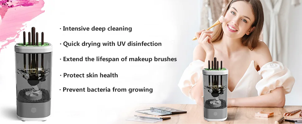 【Versatile Usage】No assembly required, large capacity, automatically clean multiple makeup brushes at once. Brush cleaner is compatible with a wide range of makeup brushes, regardless of their size or shape. From small eyeshadow brushes to larger powder brushes, it tackles them all with ease.