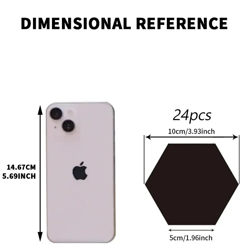 24pcs/set 3D Acrylic DIY Self-adhesive Decorative Decal Hexagonal Geometric Mirror Wall Pasted Hexagon