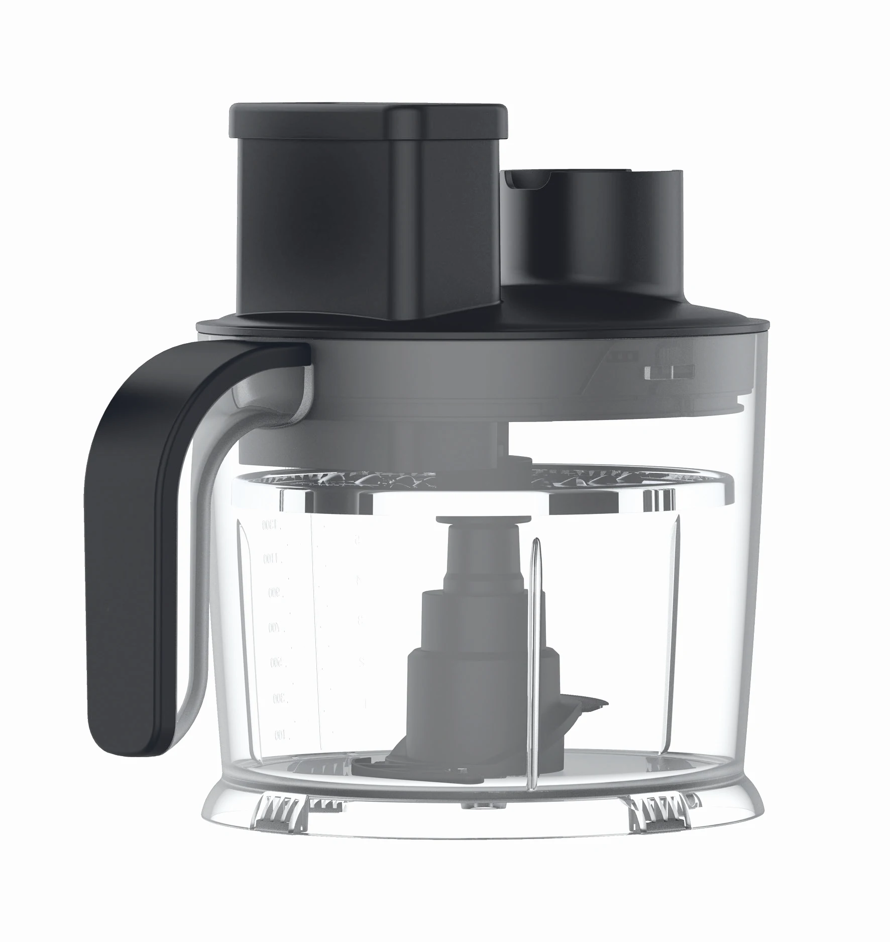 Hand blender comes complete with blending, whisking, and chopping attachments. The extra-roomy chopper bowl and smoothie cup are 100% BPA-free.