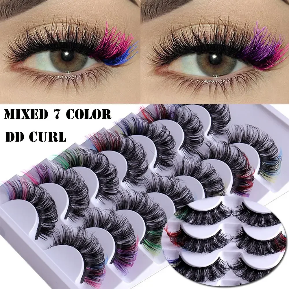 7pairs colored lashes makeup for women color eyelashes lash extension supplies makeup products beauty d curl strip lashes bulk