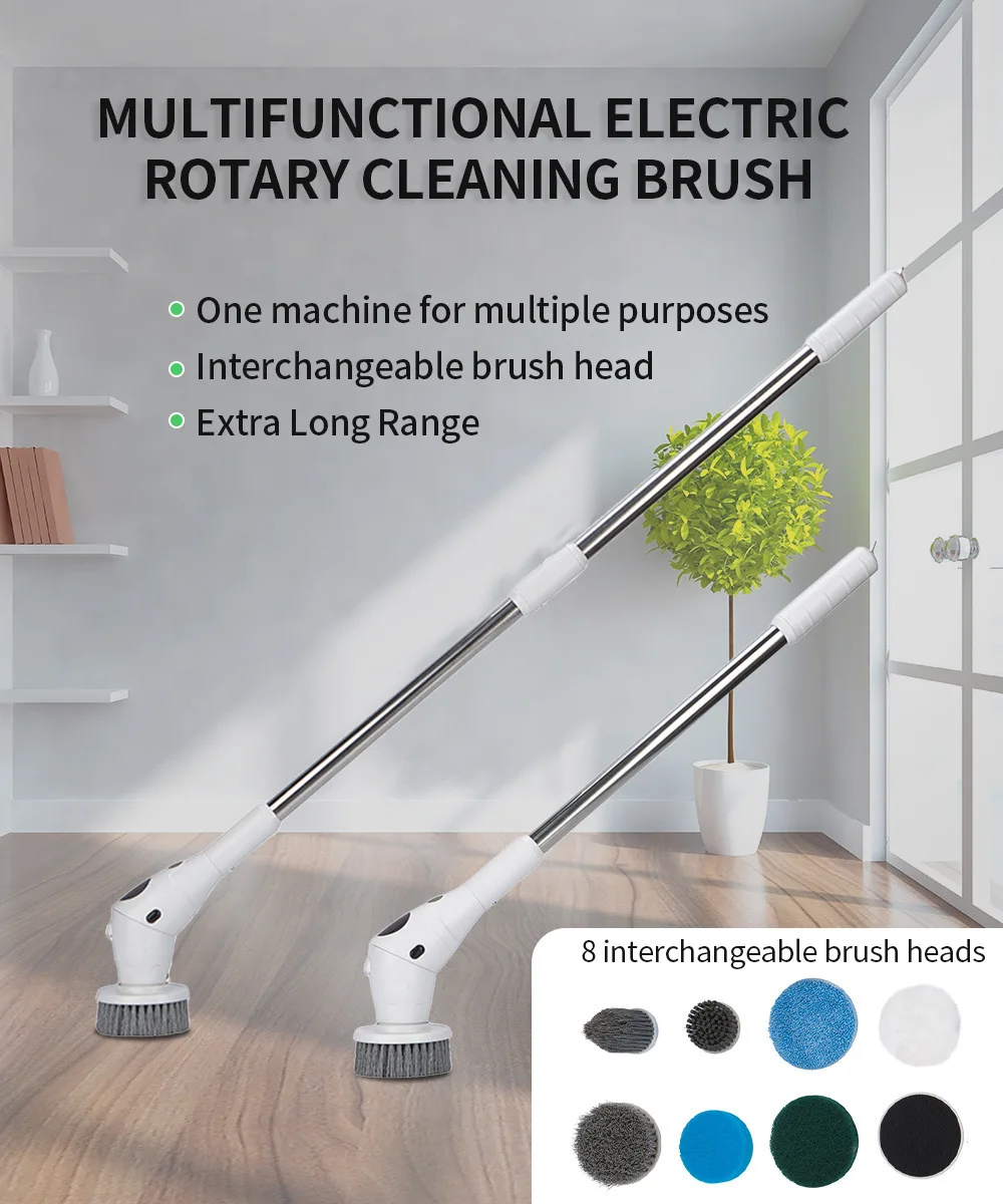 8 In 1 Household Electric Cleaning Brush Power Spin Scrubber LCD Screen LED Light For Kitchen Bathroom Toilet Cleaning Tool