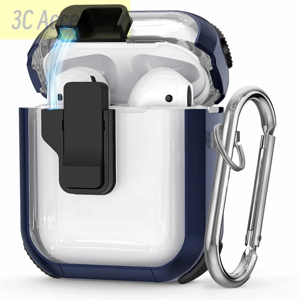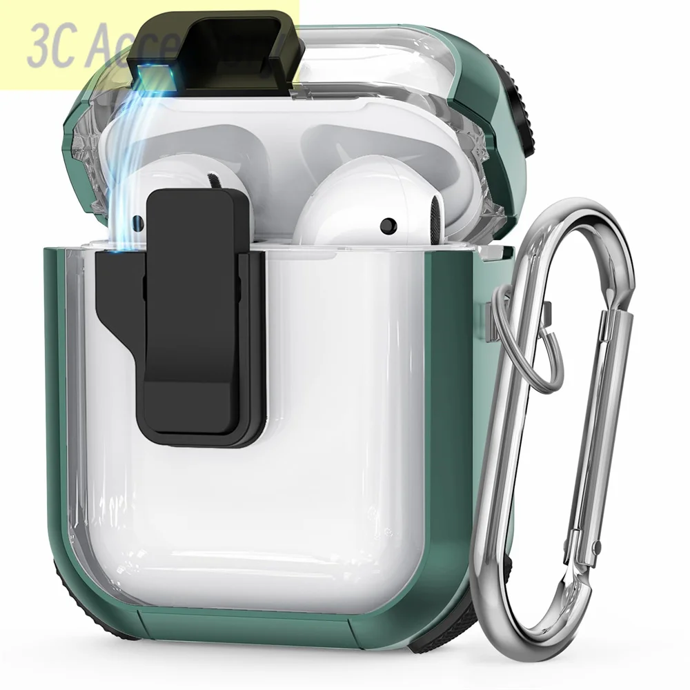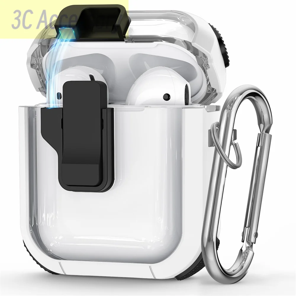 airpod 2 cases Automatic buckle switch safety lock soft TPU Transparent headphone case with keychain for apple airpods 2 1 cover