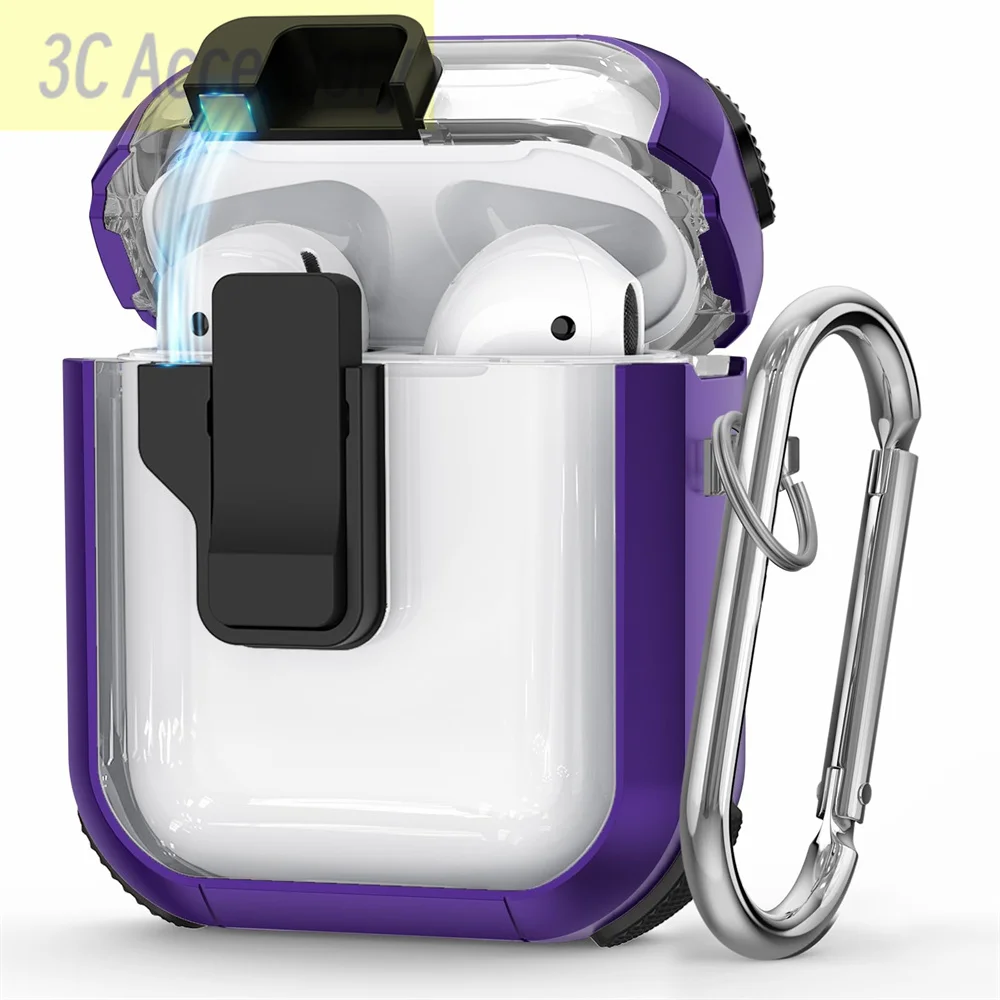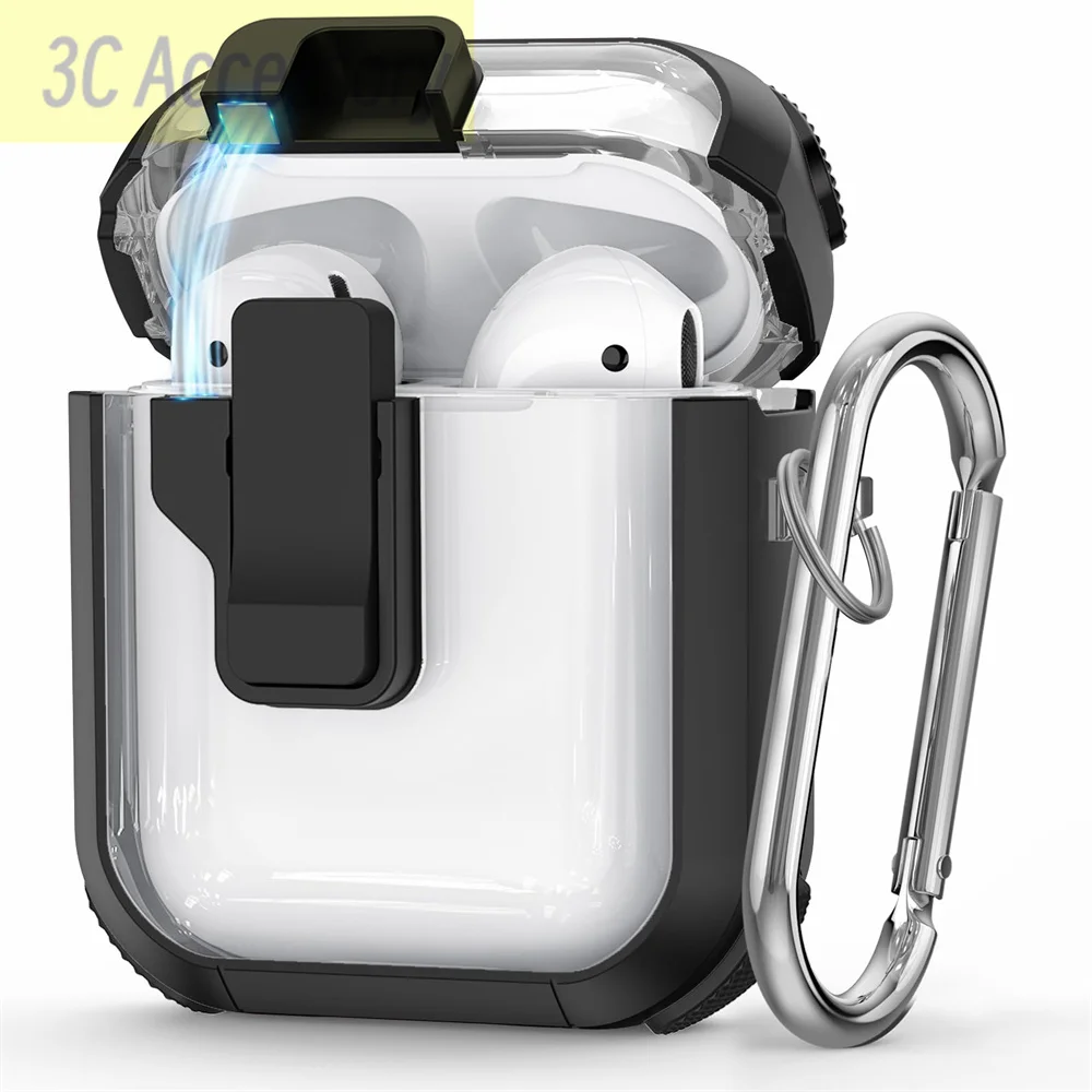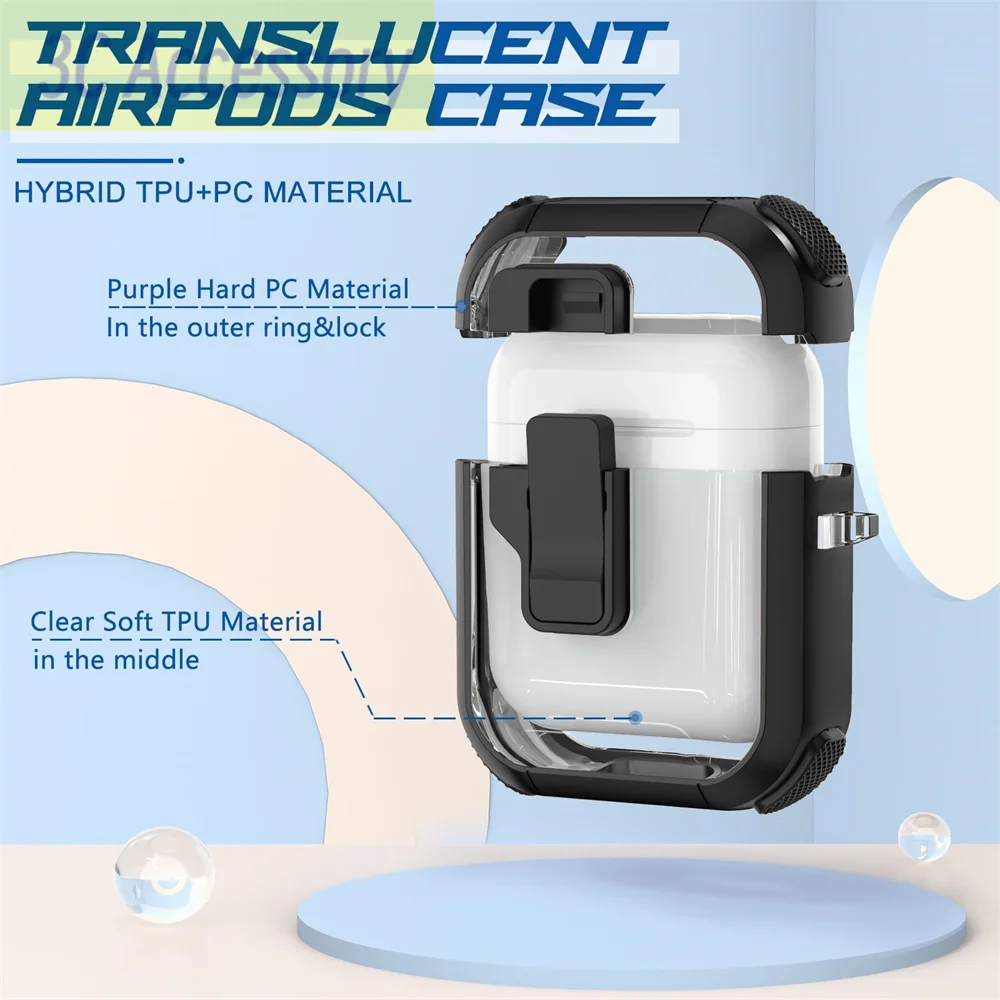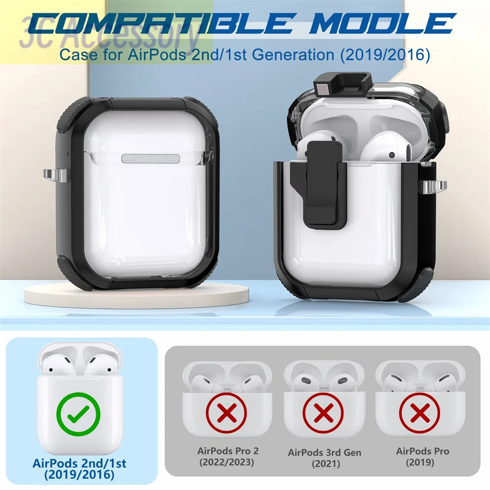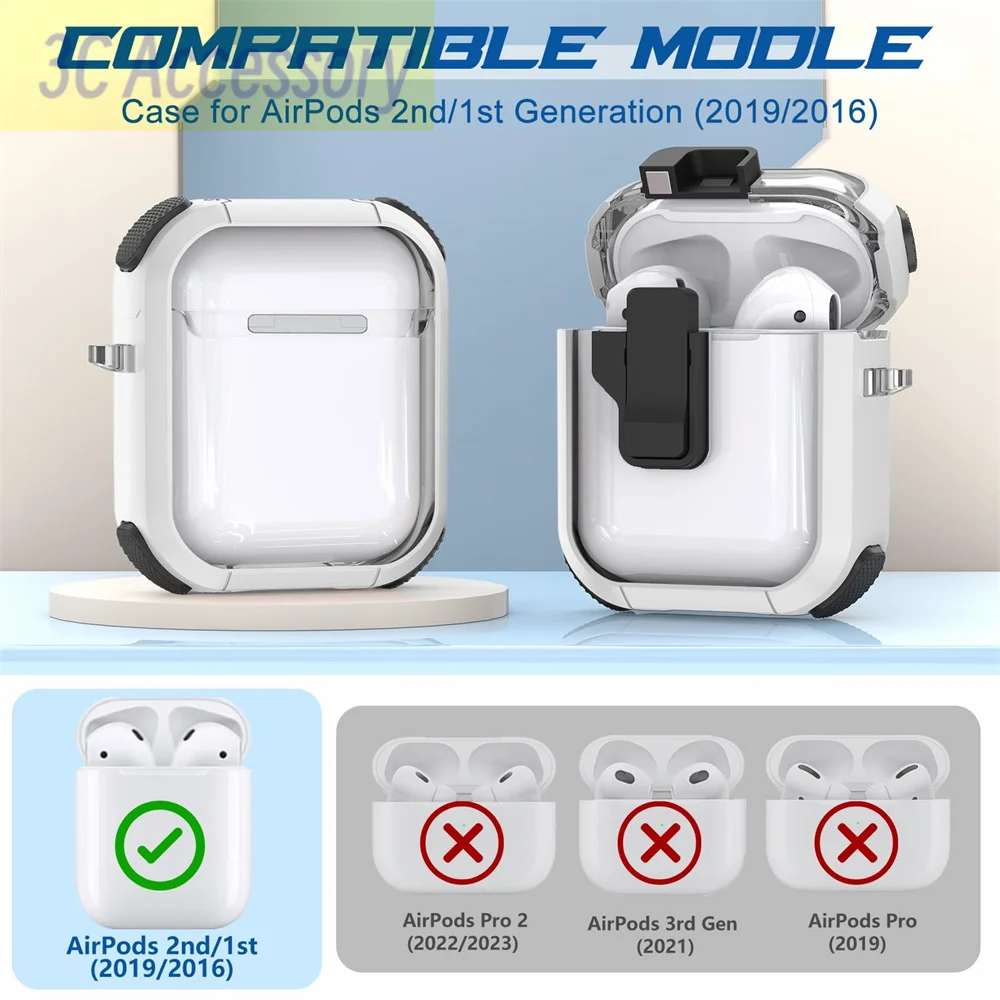 【 Compatible Device 】 Military grade hard shell protective semi transparent protective case with safety lock, designed specifically for Apple AirPods 2nd/1st generation (2019) charging case.