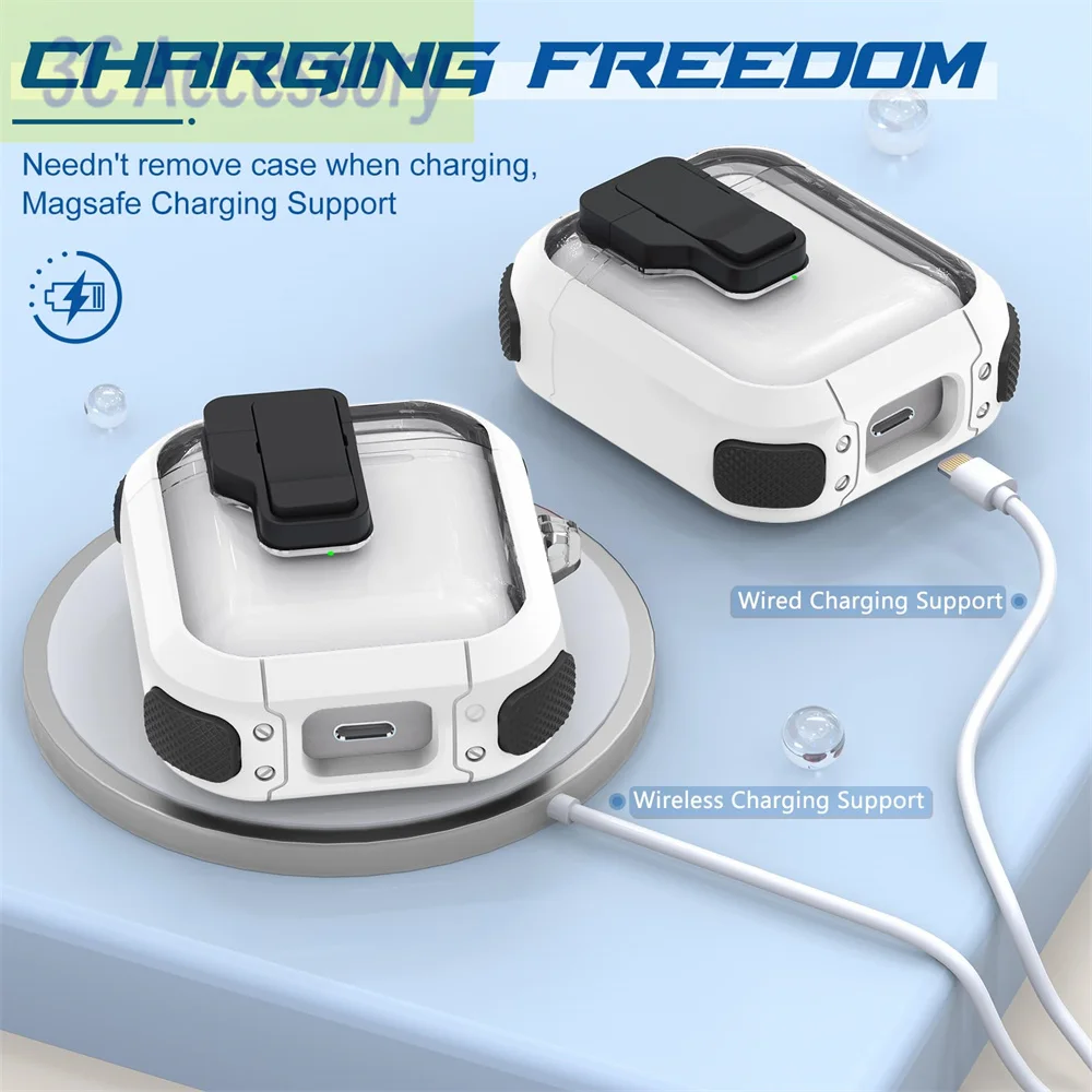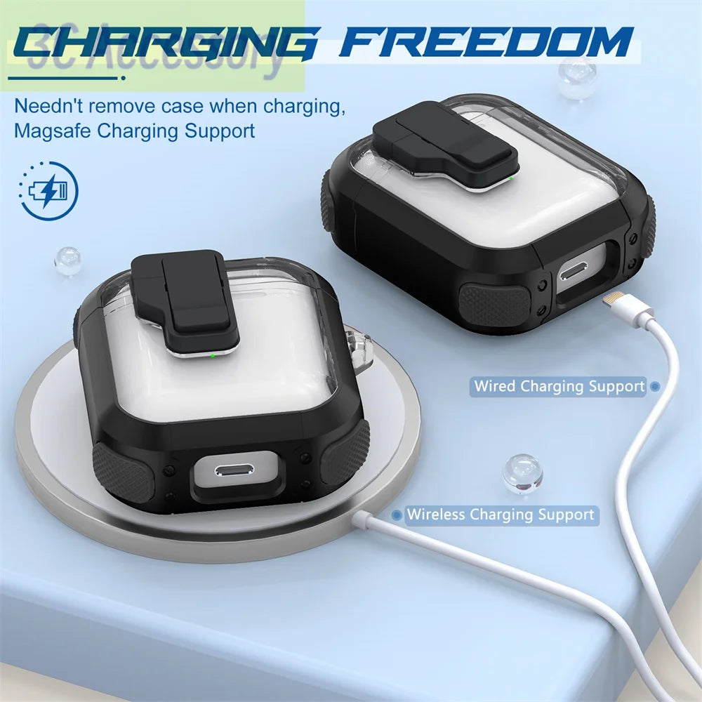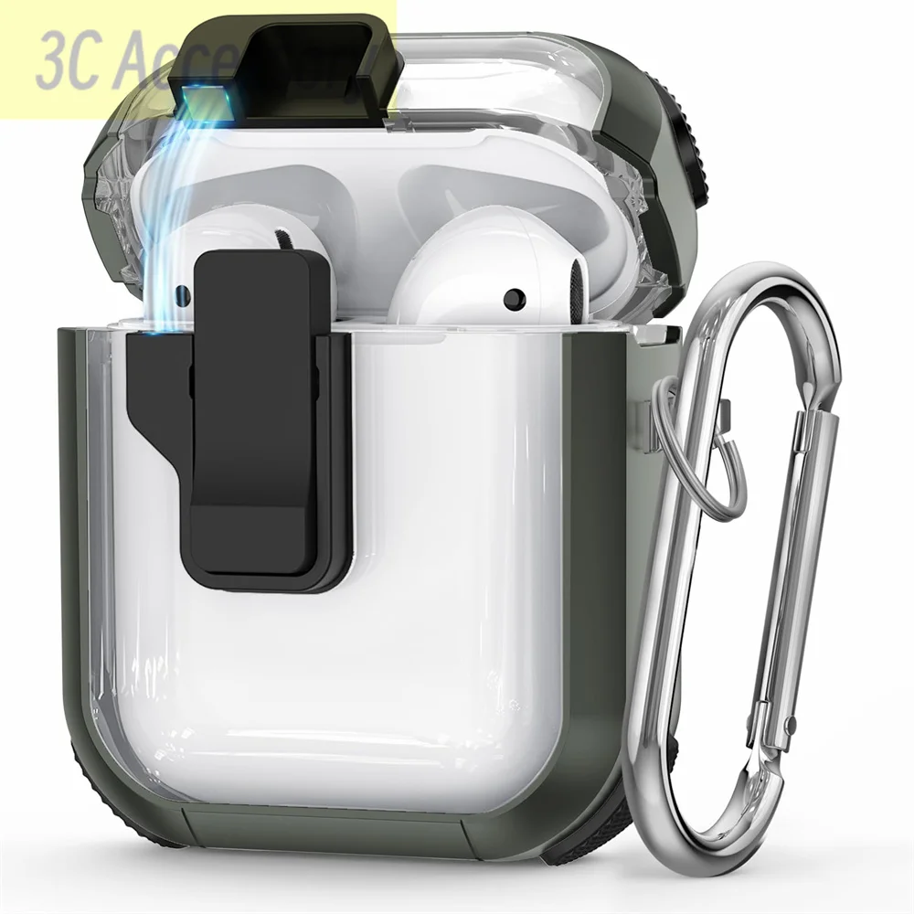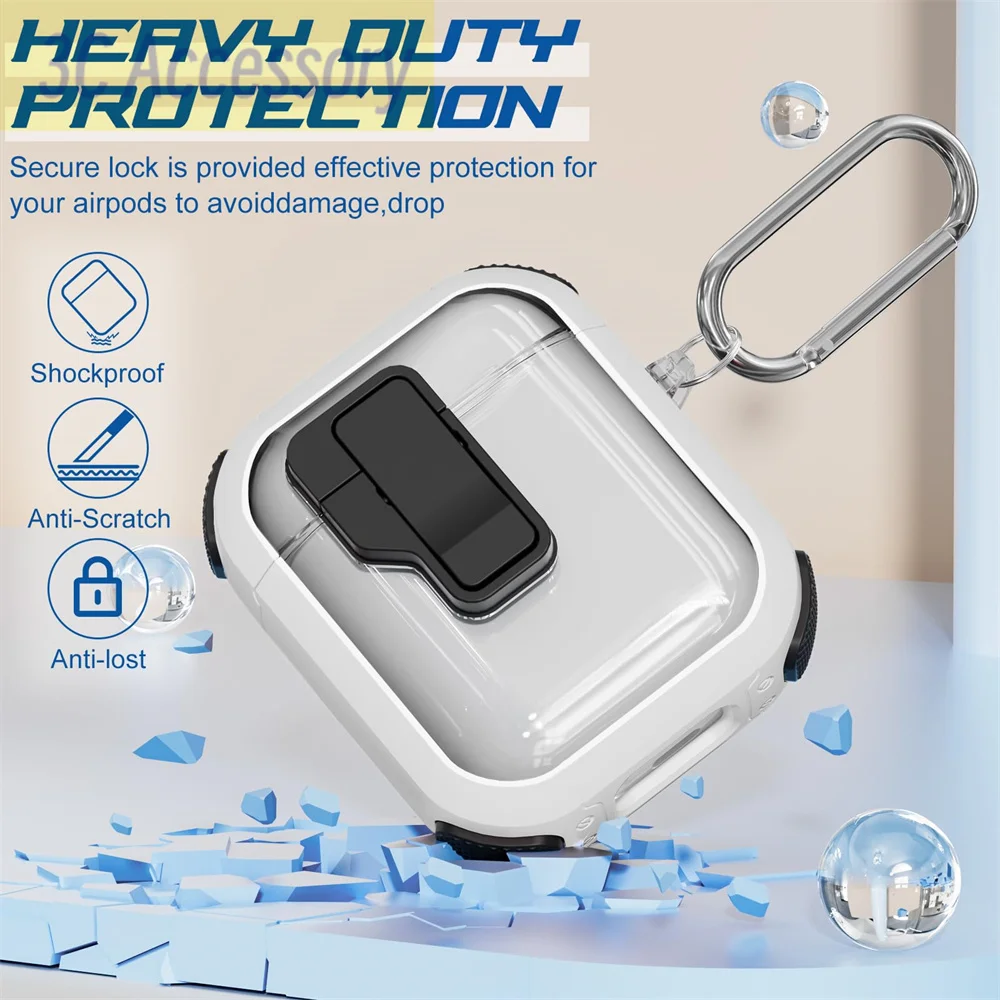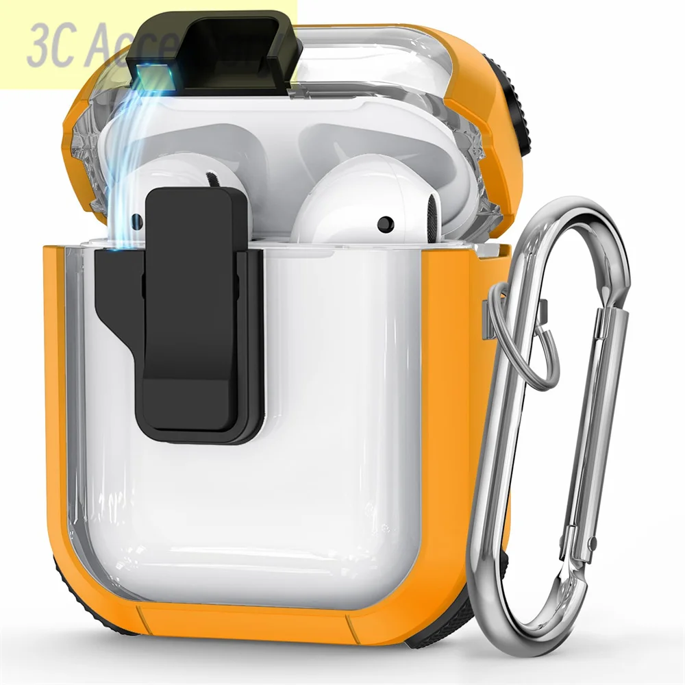 【 Compatible Device 】 Military grade hard shell protective semi transparent protective case with safety lock, designed specifically for Apple AirPods 2nd/1st generation (2019) charging case.