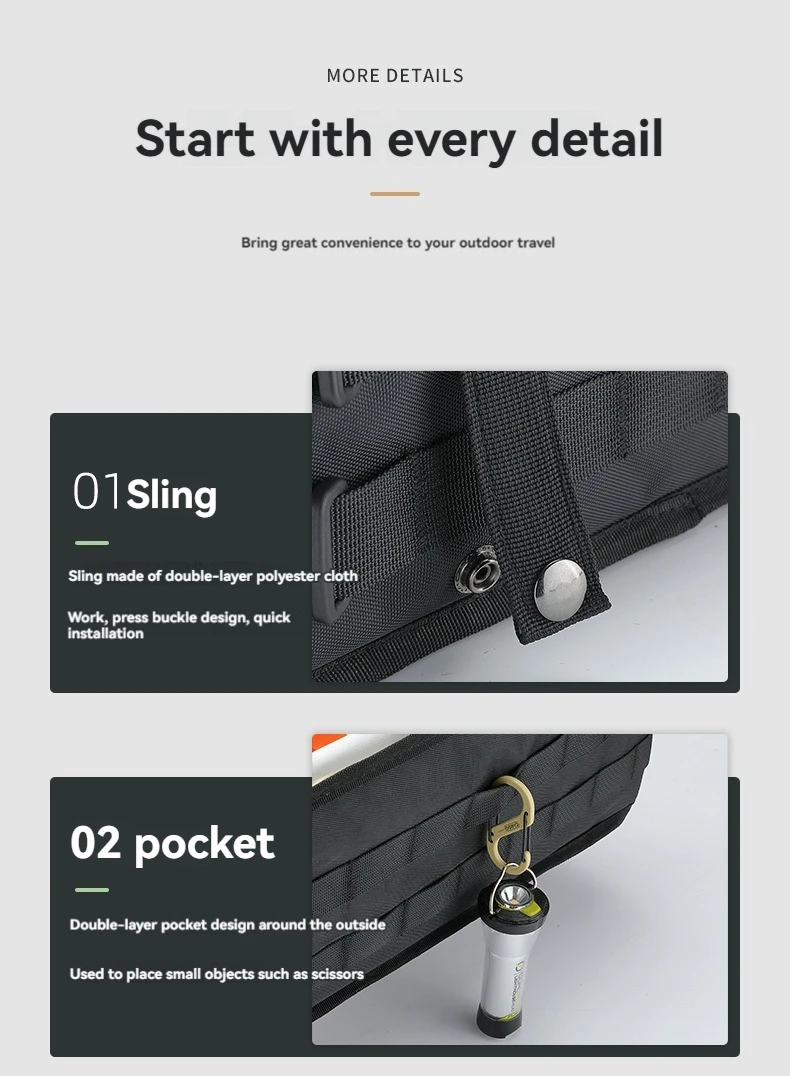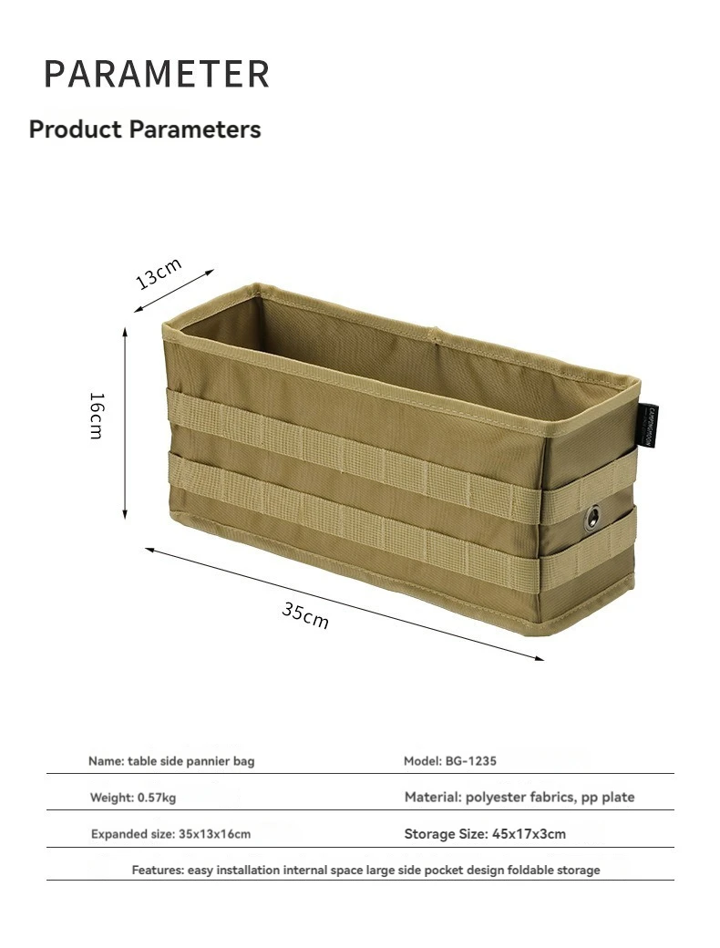 CAMPINGMOON BK-1235 Foldable Table Side Hanging Bag with Side Insertion Bag Outdoor Camping Equipment Storage Bag