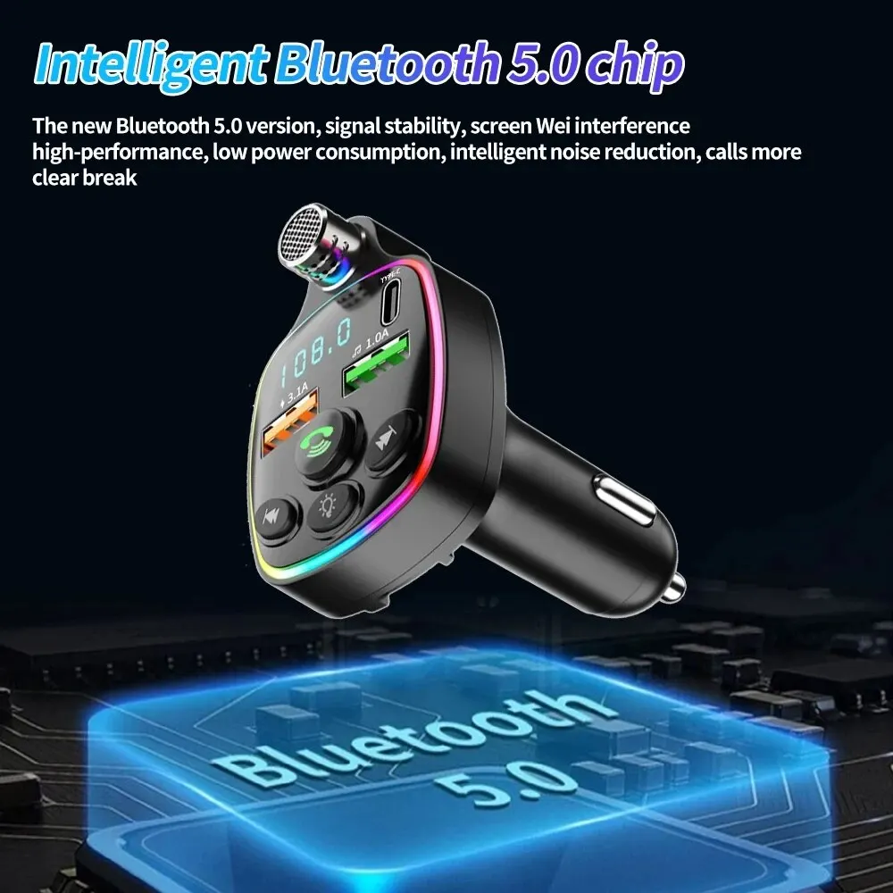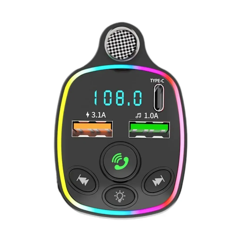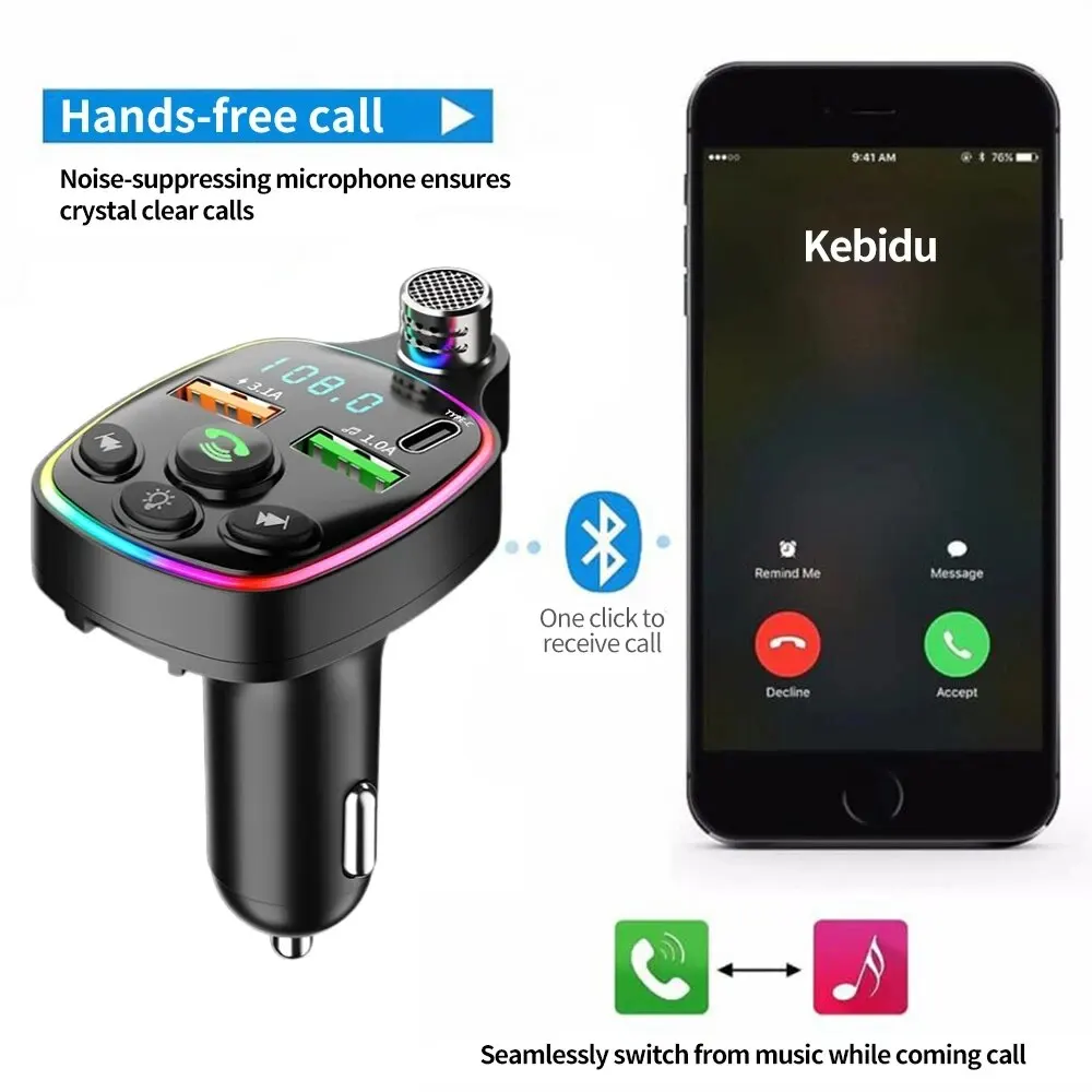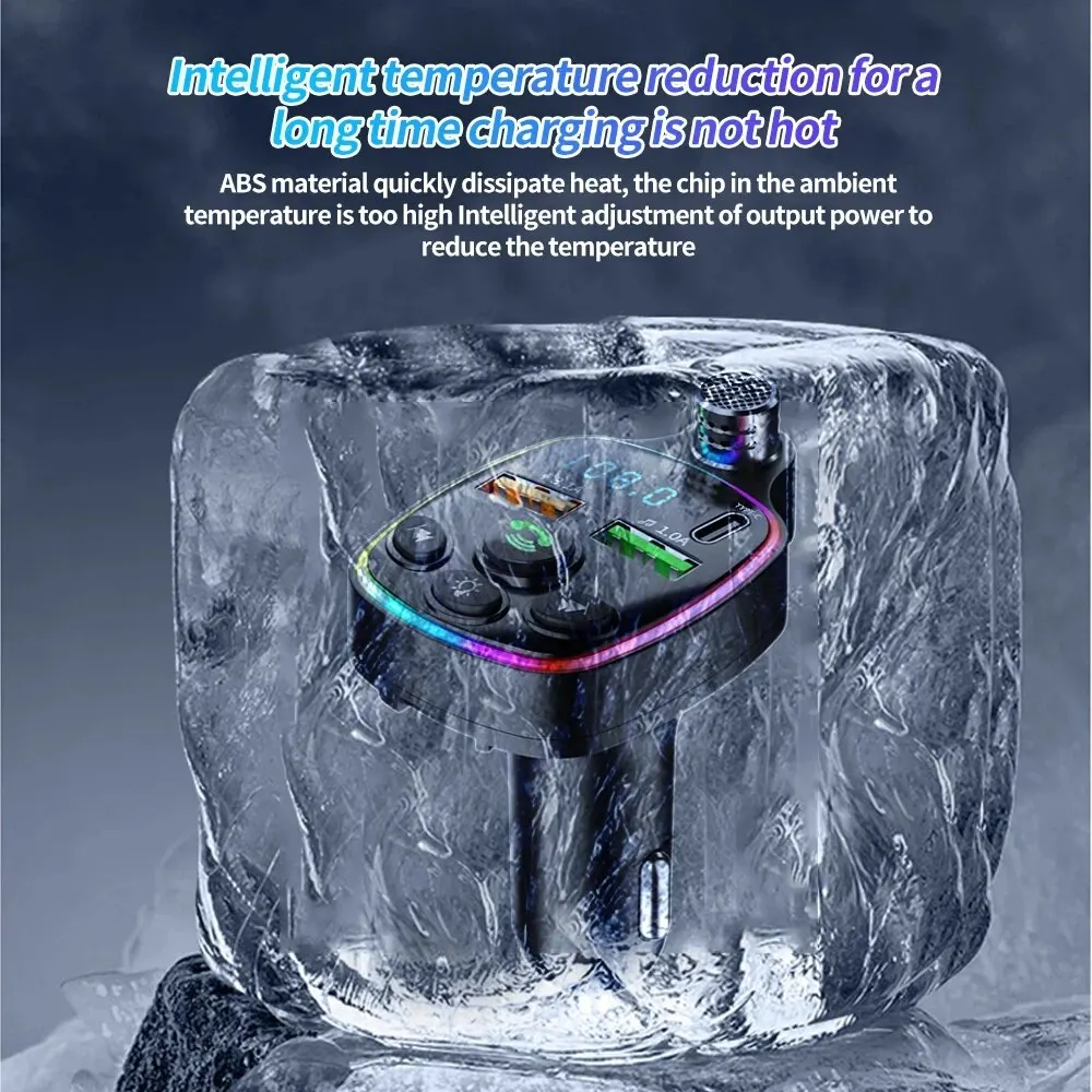 Car Bluetooth 5.0 Charger Q11 FM Transmitter Dual USB 3.1A PD 20W Colorful Ambient Light Cigarette Lighter MP3 Music Player