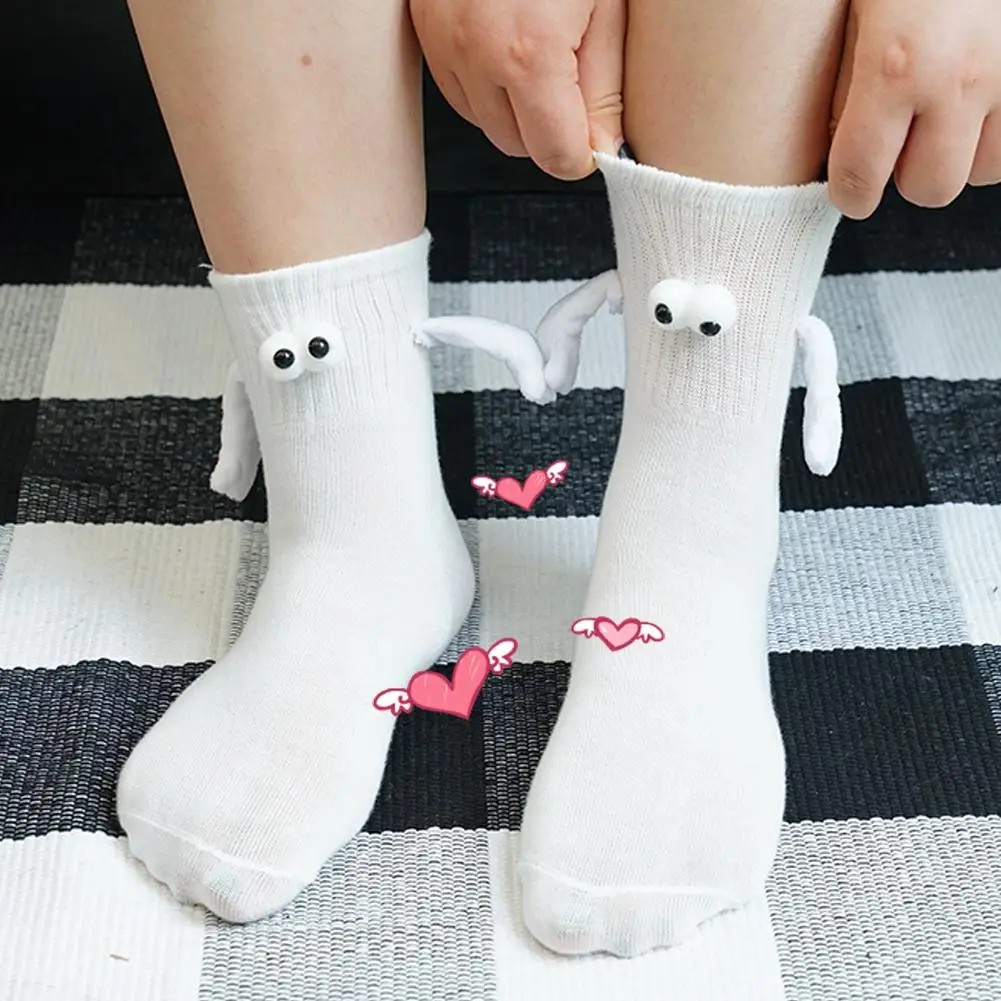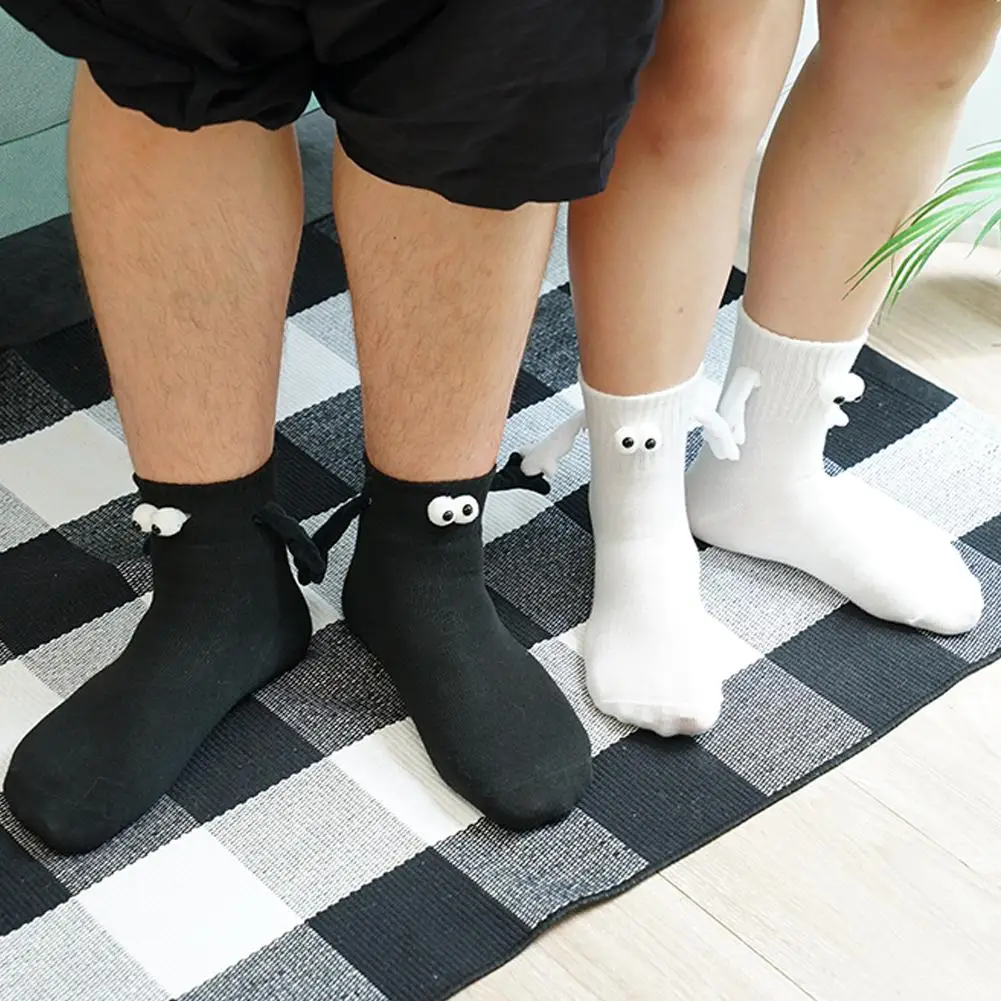 Cartoon Lovely Cotton Breathable Comfortable Doll Eyes Couple Socks Magnetic Club Celebrity Ins toe Socks