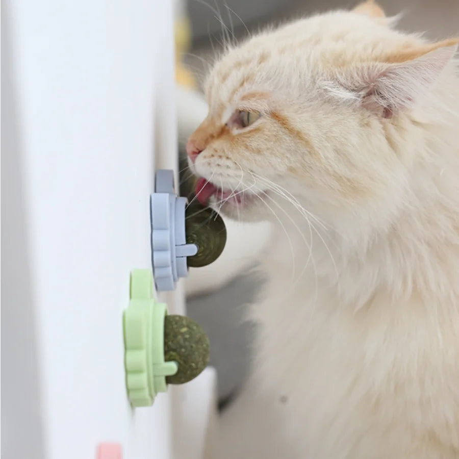 Cats Rotatable Catnip Ball Wall Sucker Lick Treat Toys Contail Catnip Sugar Balls Smart Cat Toys Interactive Ball Cats Mint Toy