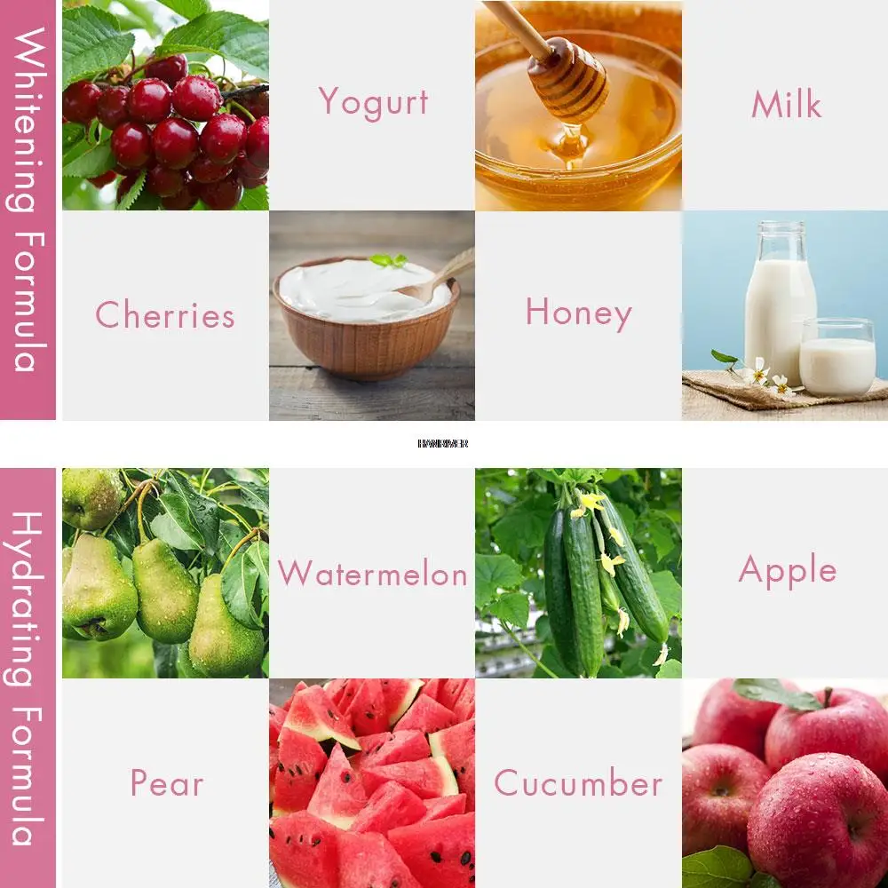 3.Mask is made from purified water, milk, fruit juice and collagen,so it is healthy, environmentally friendly and safe for you to shine your skin without any worry about side effect, just enjoy the natural mask and the skin massage
