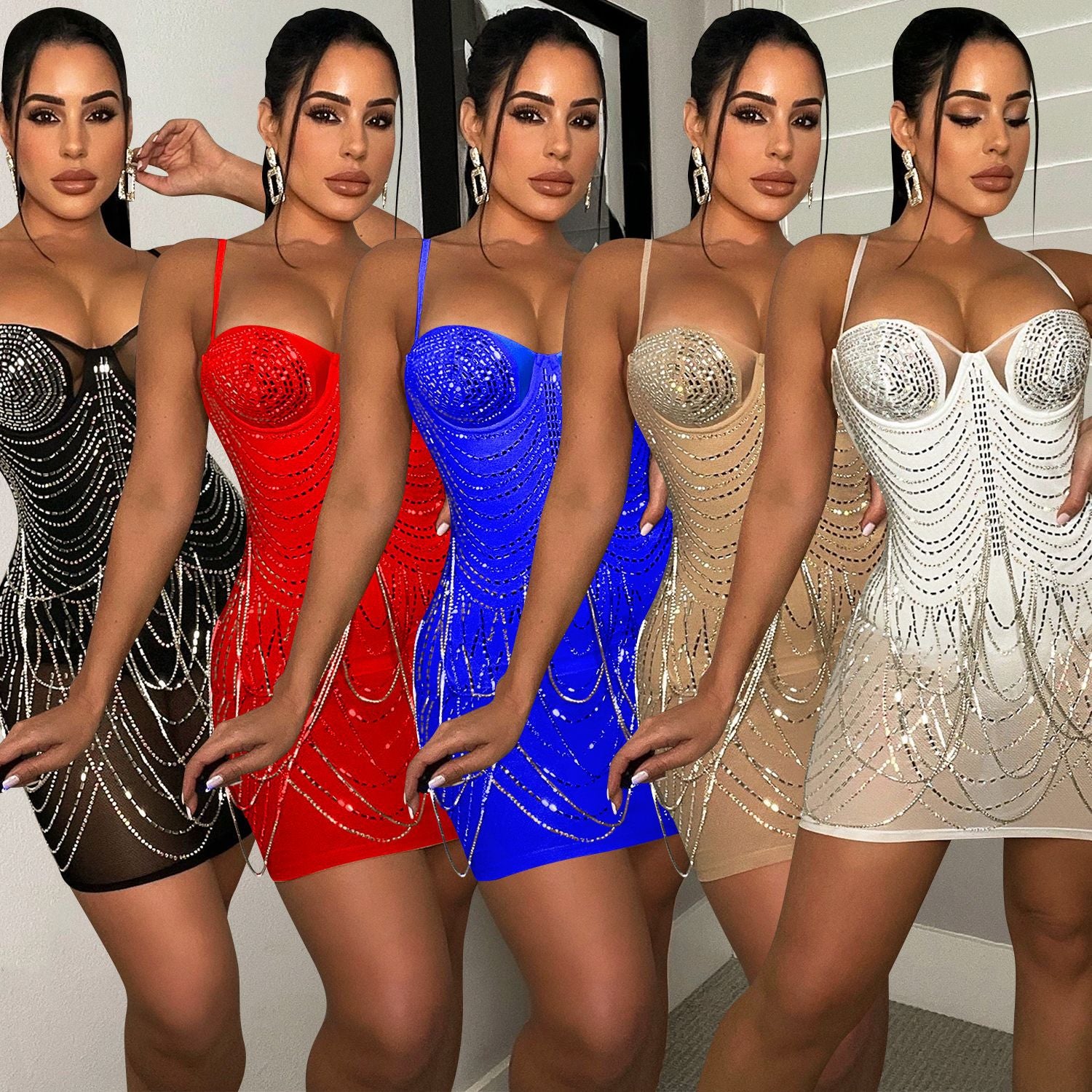 Fashion New Product Hot Drill Perspective Sling Dress Women
