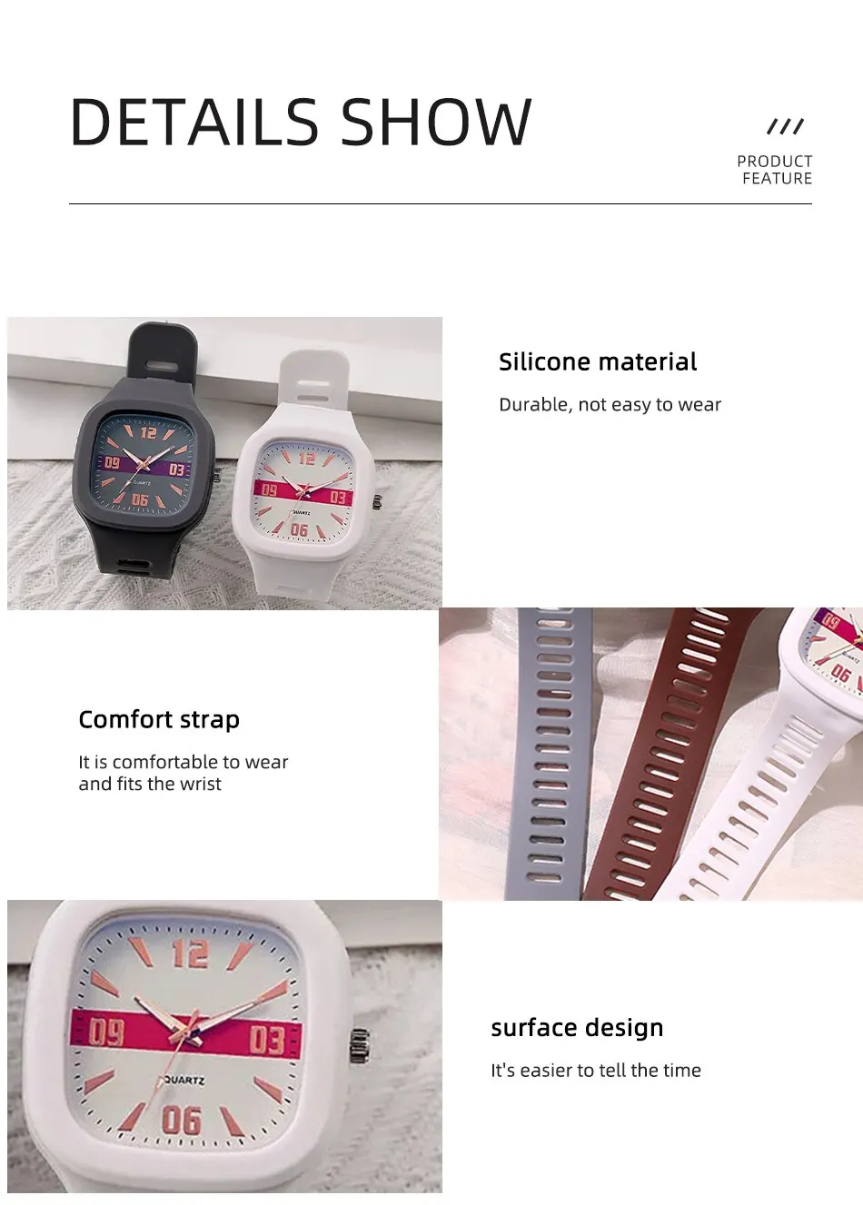 Fashion Studant Black Band Sport Quartz Watches Men Women Square Wirstwatch Casual Watch Couples Jewelry Gifts Reloj Hombre