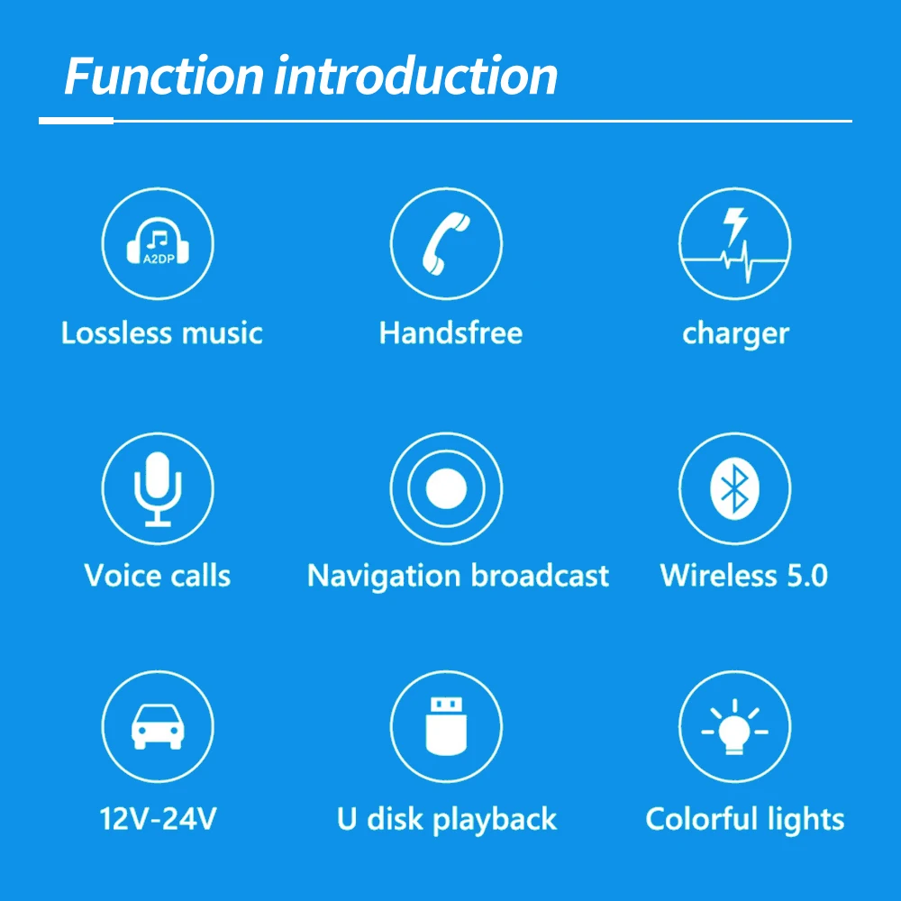 9: Hardware functions: FM transmitter, Bluetooth, USB charging, reading U disk, color lights, EQ function