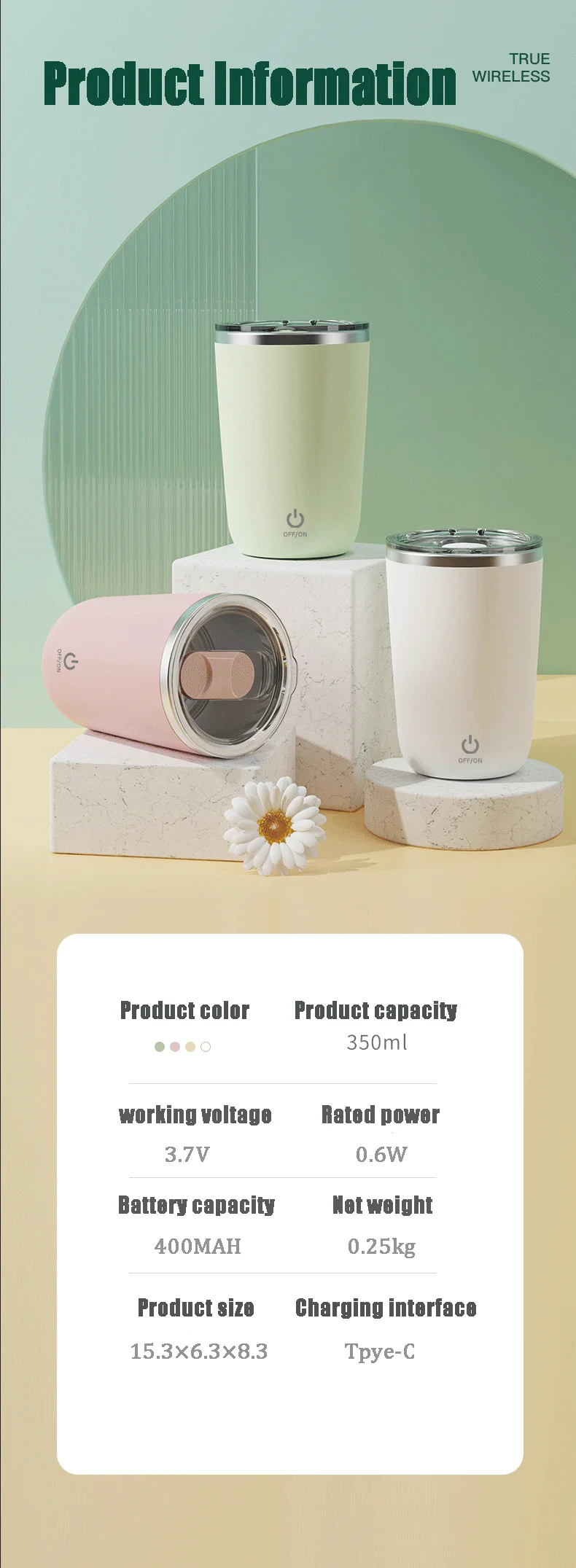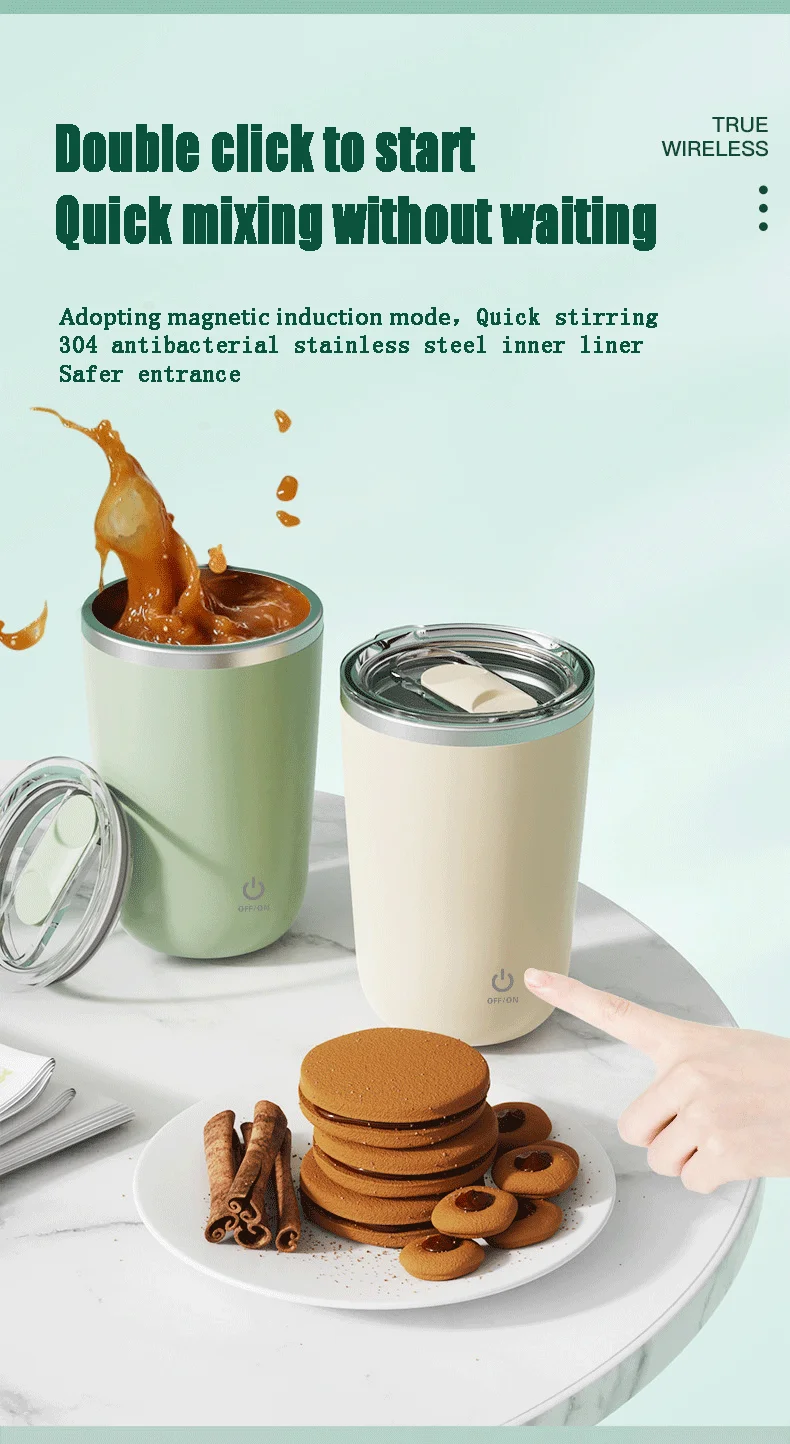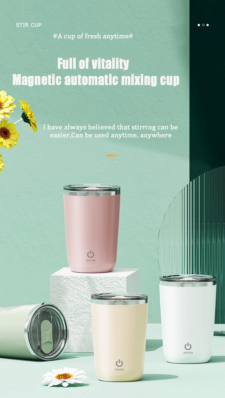 Magnetic Automatic Mixing Cup, 304 Stainless Steel Rechargeable Portable Coffee Cup, Automatic Mixing Stainless Steel Cup
