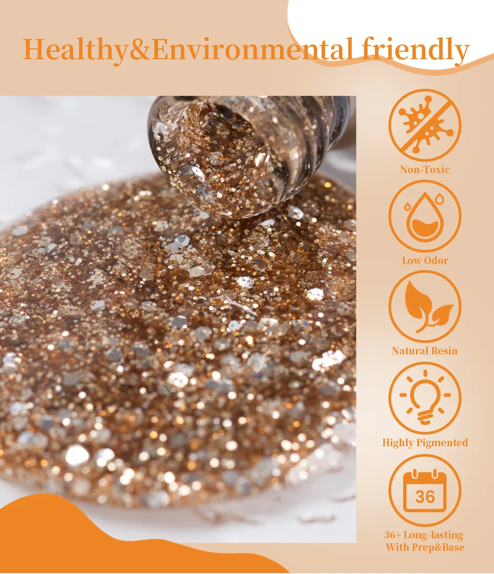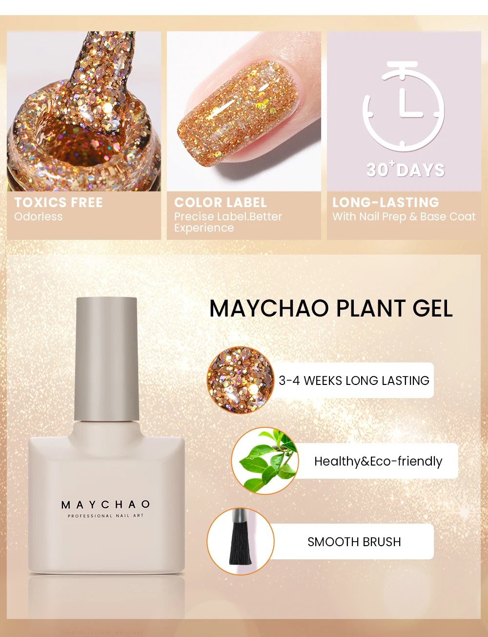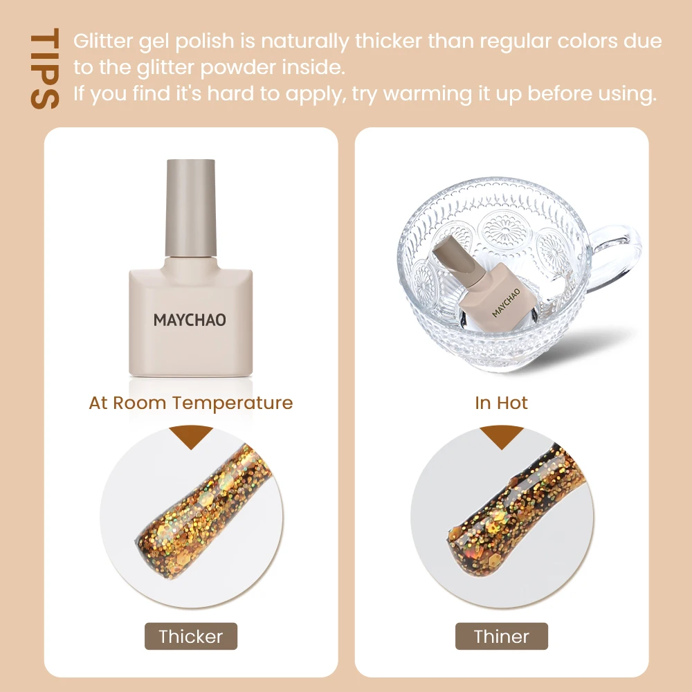MAYCHAO 12ML Glitter Gel Nail Polish Autumn Colors Long Lasting For Manicure Soak Off Nail Art Gel Varnish Shiny Sequins UV Gel