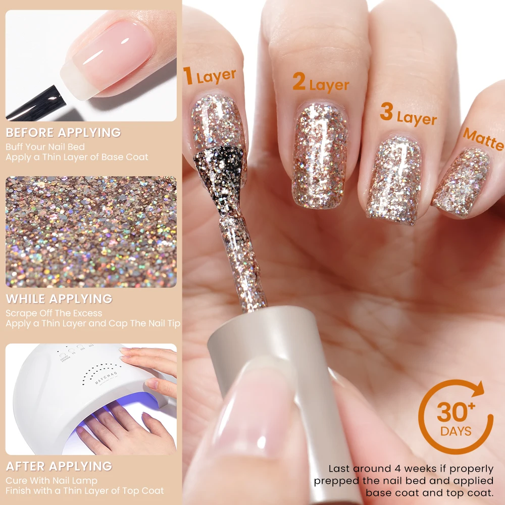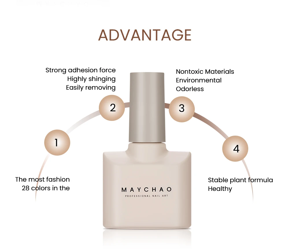 High Shine and Durability: Gel nail polish has vibrant colors and high shades, a thin layer can show the color of gel nail polish. Under the curing of the nail lamp, it can stay on the nail for about 28 days and the color is still relatively obvious.
