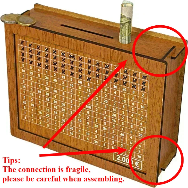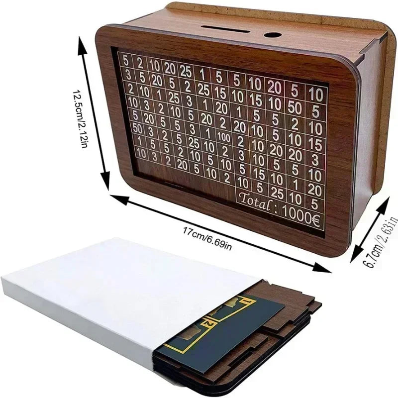 Money Box Piggy Bank Wood Cash Banks Reusable Store Box with Savings Goal and Numbers To Check for Helps The Habit of Saving