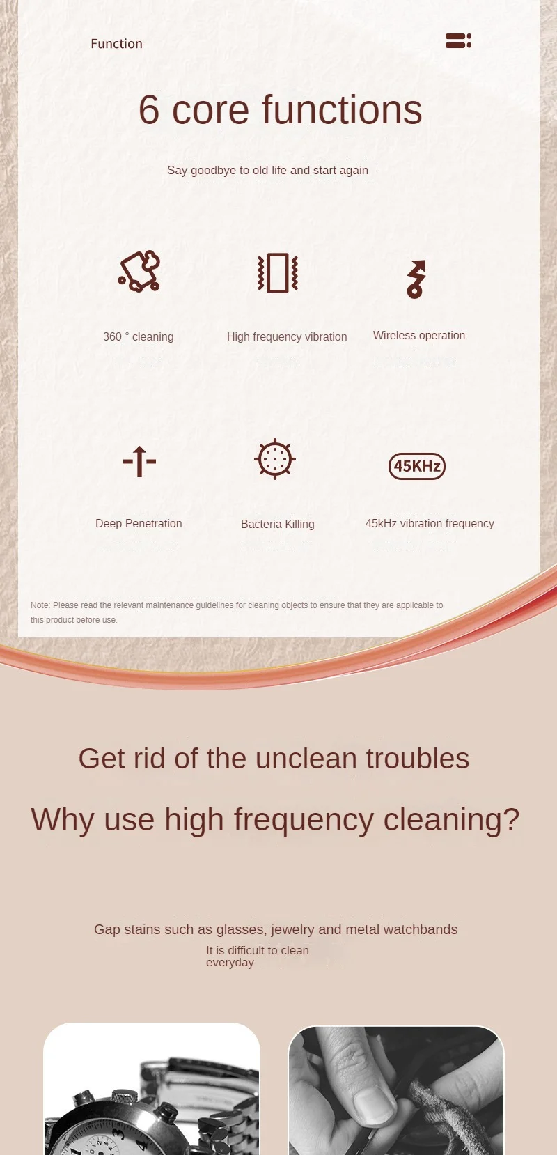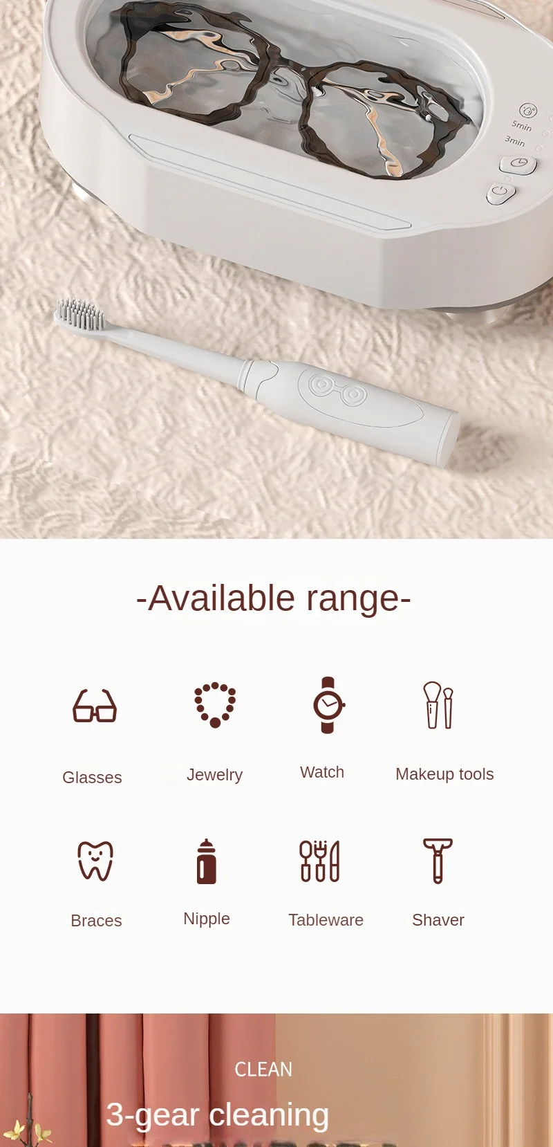 • Versatile Cleaner :Unlike traditional ultrasonic cleaners, this multi-functional cleaner can be used on a variety of items including glasses and jewelry. It's a versatile addition to any home.
