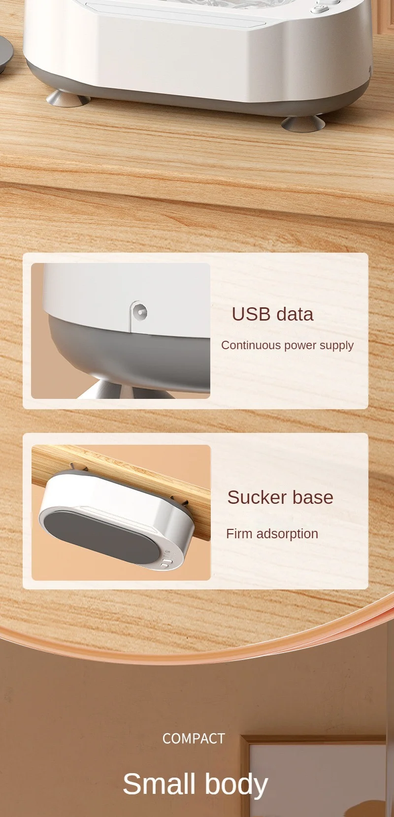 3.The bottom of the vacuum cleaner is equipped with four shock-absorbing rubber feet,stable adsorption on the desktop, eliminating the displacement caused by high-frequency vibration, so that more quiet.