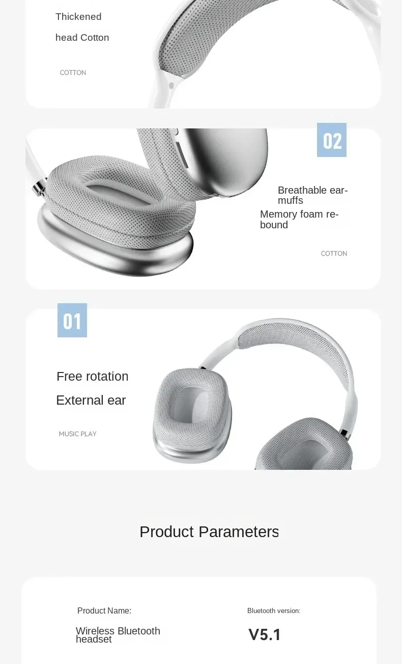 P9 Wireless Bluetooth Headphones With Mic Noise Cancelling Headsets Stereo Sound Earphones Sports Gaming P9 Pro Max Supports TF