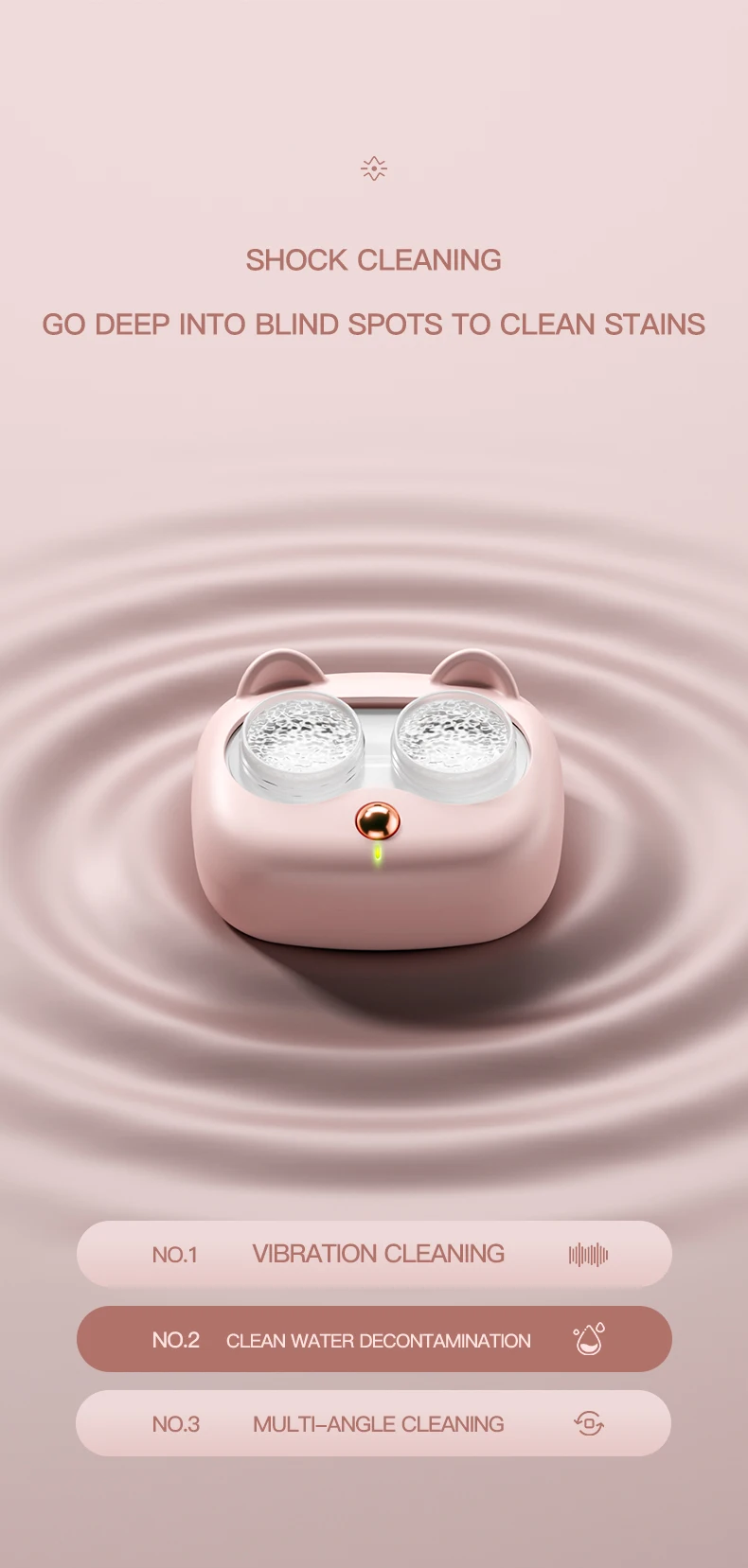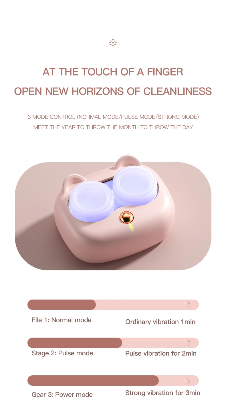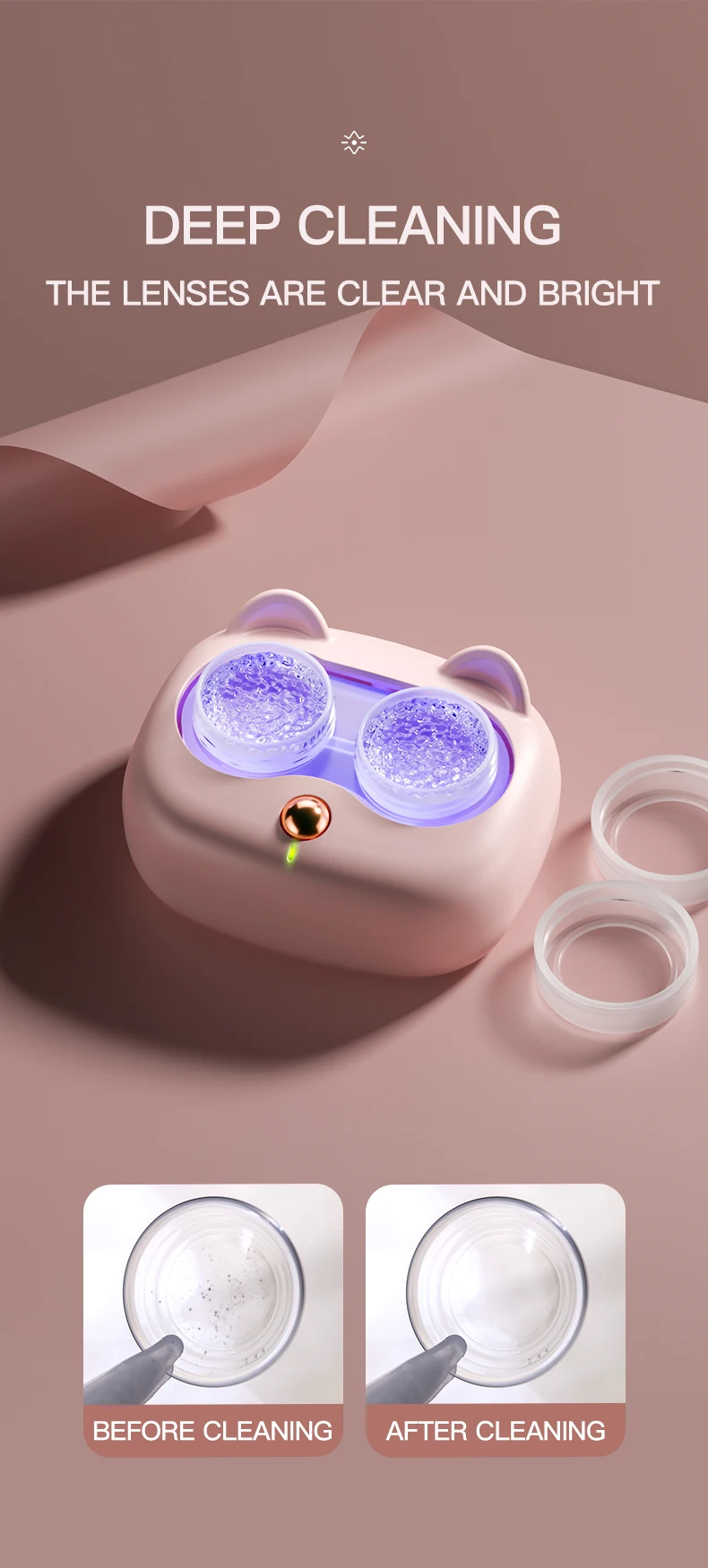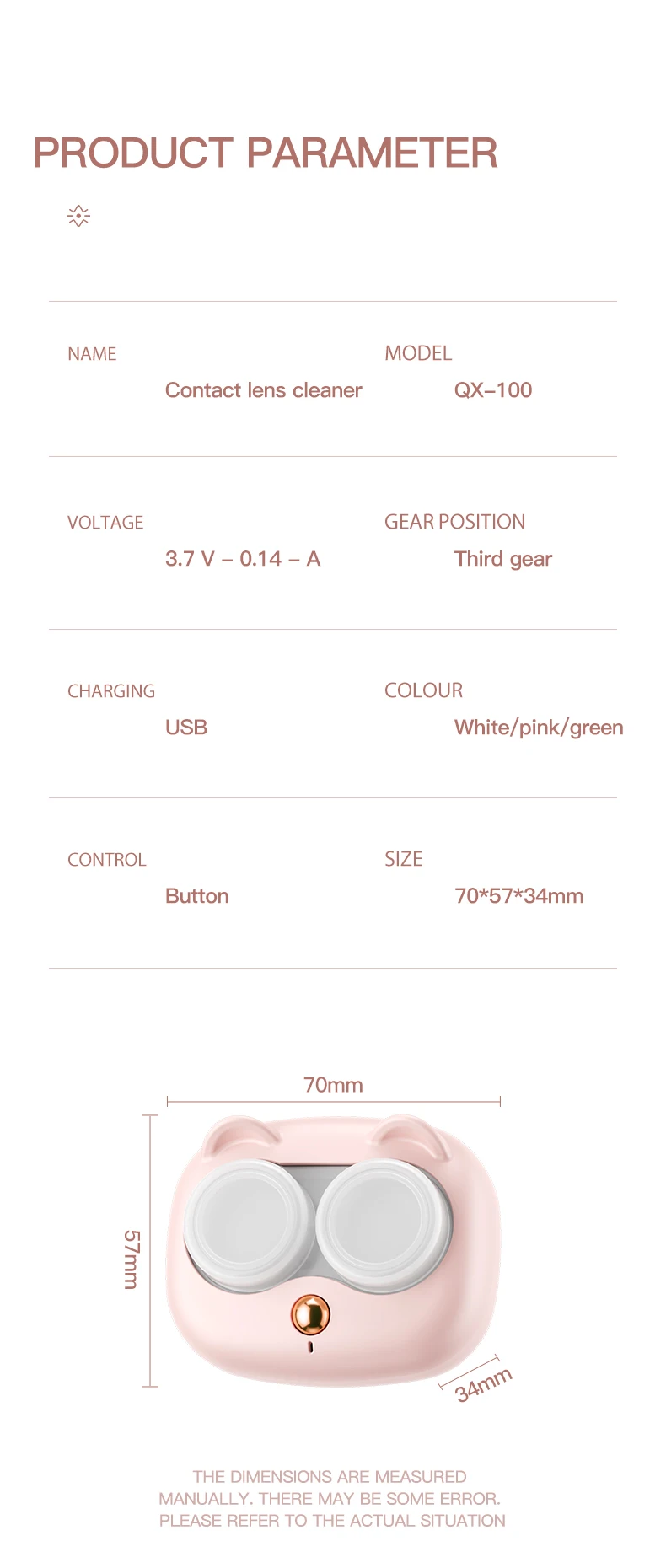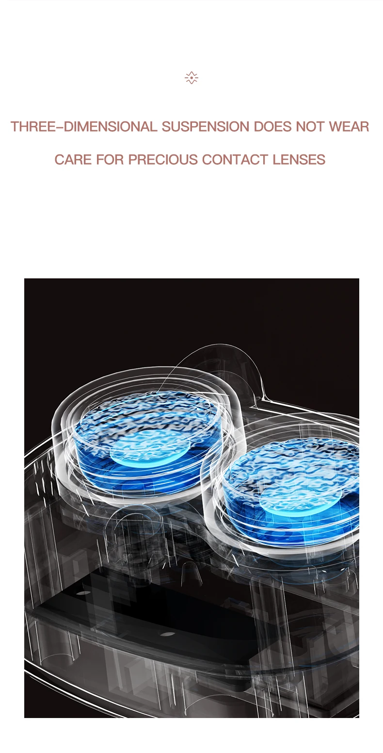 1. Efficient cleaning: The contact lens cleaning box uses high-frequency vibration and ultraviolet sterilization function, which can be quickly cleaned and sterilized, and the one-click operation is simple and convenient.