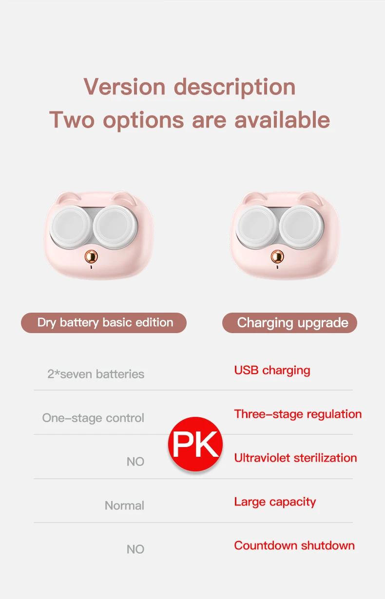 2. Two charging methods: This contact lens cleaning machine has two configurations: USB charging and dry battery, you can choose the right cleaning machine according to the actual situation