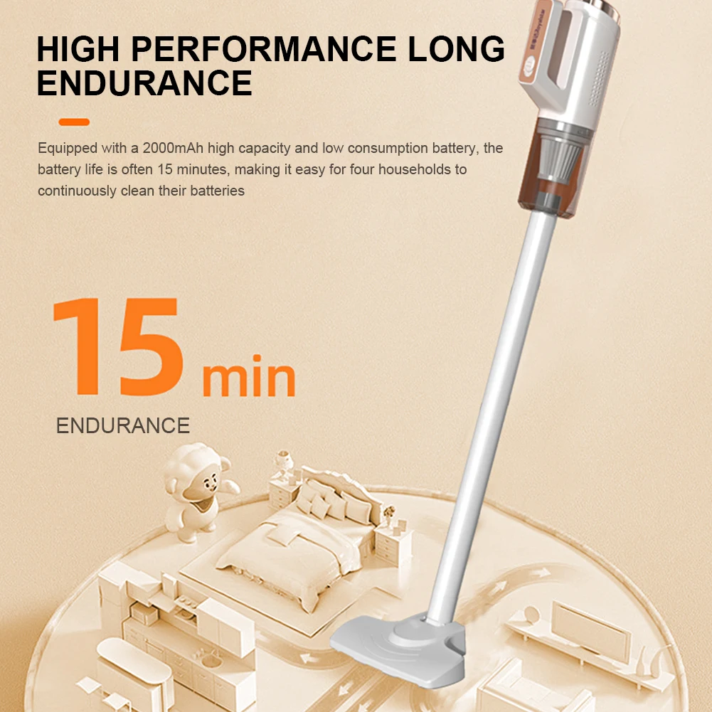 Feature: Specification: Origin: Mainland China Function: Wet and Dry Certification: NONE Installation: Handspike/Hand Held Dust Storage Type: Dust Box Special Suction Nozzle: Flat Suction Nozzle Bag Or Bagless: Bagless Cleaning Route: Random Type Battery Life: <30 min Filter Type: HEPA Number of operating modes: 3-4 Number of nozzles: 1-3 nozzles Weight: <3 kg Material: ABS Colour: white Cordless vacuum cleaner: 13000pa Rated speed: 35500RPM Charging method: 5V USB boost charging cable Charging voltage: 8.4V Operating voltage: 7.4V Rated power: 120W Noise: ≤84dB Operating temperature: -20℃~+50℃ Package size: 515 x 132 x 110mm/20.3 x 5.2 x 4.3inch