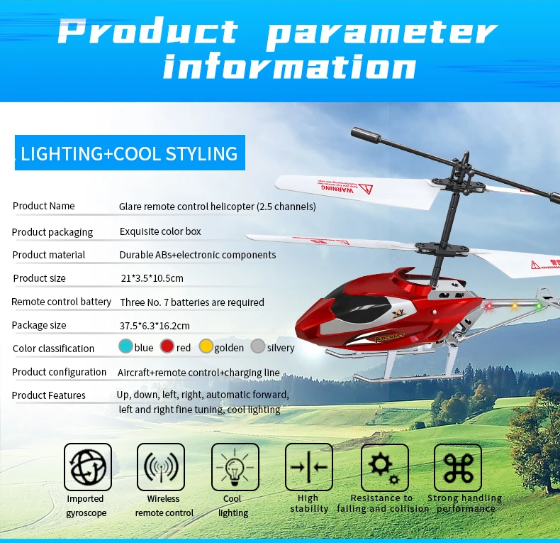 RC Helicopter with Light Fall Resistant Remote Control Helicopter Plane Aircraft Flying Kids Toys for Boys Gifts