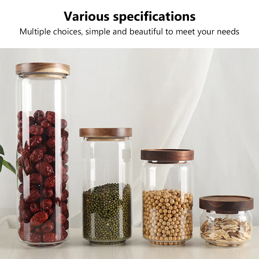 Wood Lid Glass Airtight Canister Food Container Tea Coffee Beans Kitchen Storage Bottles Jar Sealed Grounds Candy Jars Organizer