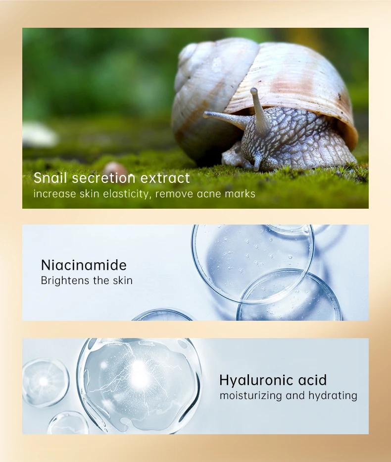 Snail secretion extract: increase skin elasticity, remove acne marks
