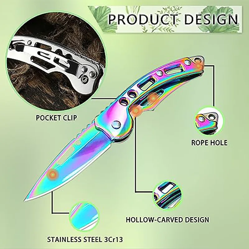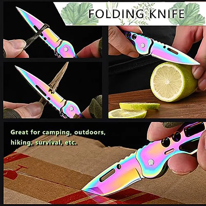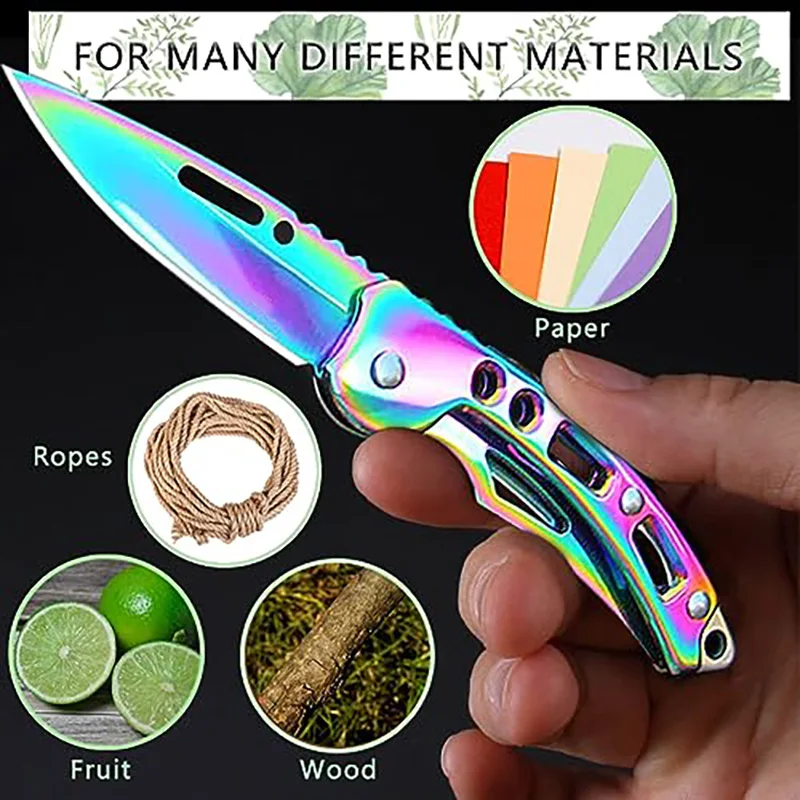 Stainless Steel EDC Folding Knife Outdoor Camping Survival Tactical Hunting Self-defense Knives Keychain Fruit Pocket Knife
