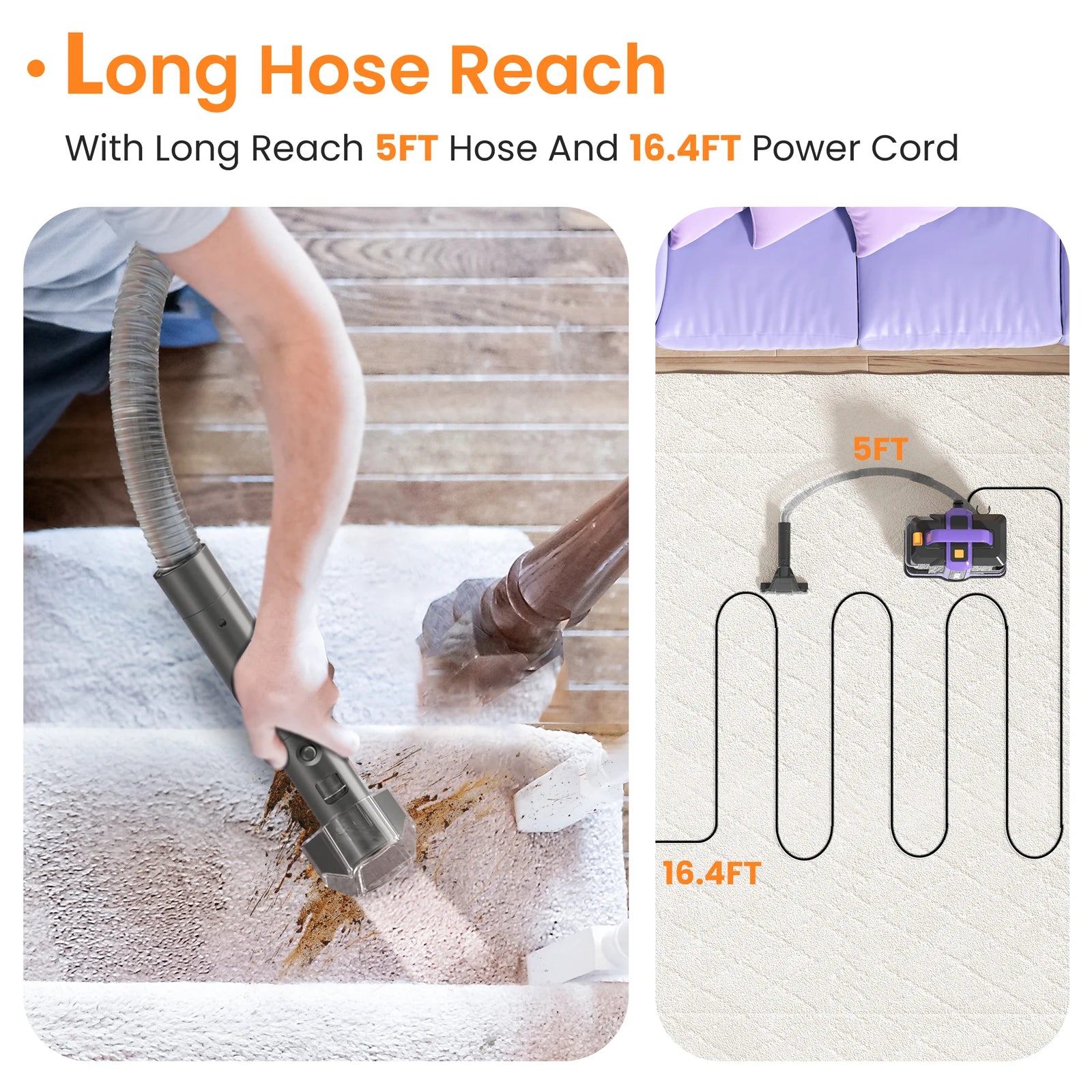 Enhanced Design: Keep the cords and hoses neatly stored on the stand of the carpet cleaner. The brushes can be hung on the double hooks of the machine. Store the carpet cleaner under a sink or in a closet. With its sleek design and user-friendly features, the TASVAC Carpet cleaner is simple to use and easy to maneuver.