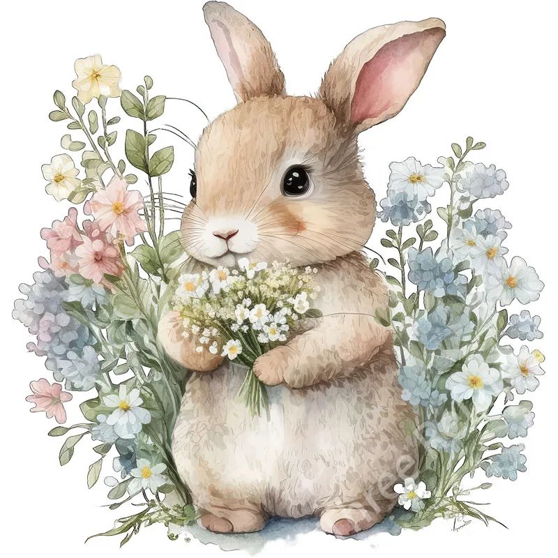 Three Ratels QD156 lovely rabbit watercolor animal stickers self-adhesive room decoration wall stickers