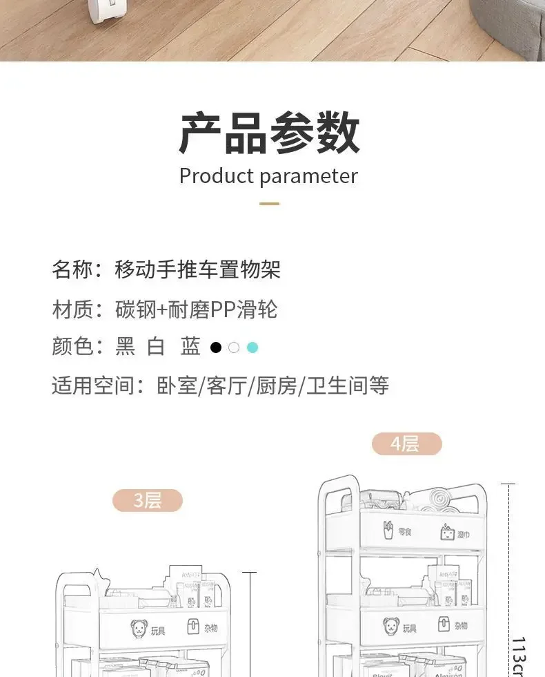Trolley Rack Floor Multi-Layer Household Bedroom Baby Mobile Snack Kitchen Multi-Functional Storage Rack