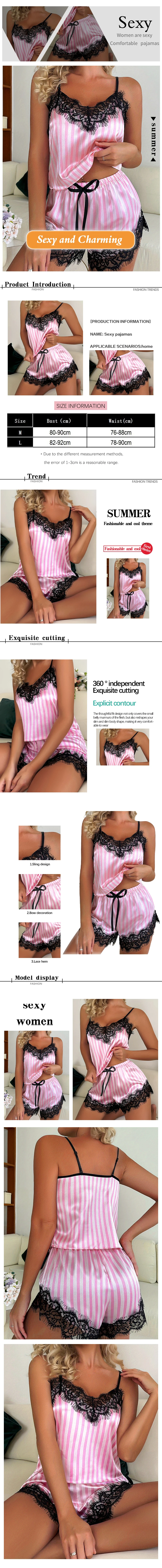 Two Piece Women's V-Neck Sexy Lace Suspender Pajama Shorts Set Casual Women's Sleeveless Sexy Pajama Set