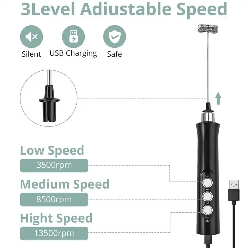 • USB Rechargeable :Conveniently recharge your milk frother with a USB cable, making it easy to use and environmentally friendly.